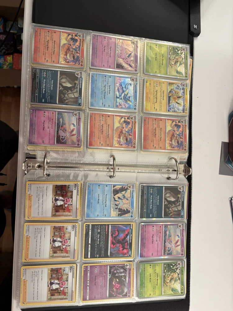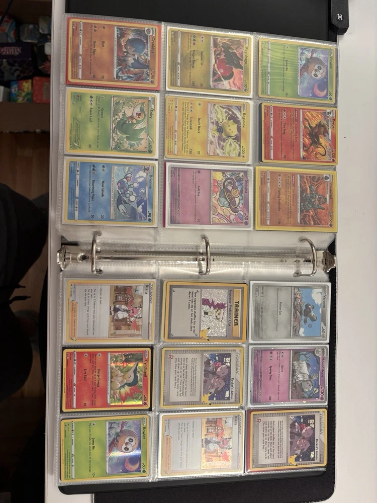Card condition varies largely based on era, but all of them that I handled were clean, no damage and everything feels very crisp, and even some of the older cards are near mint (that full art Holo Entei is especially nice!) Fun card combos organized with different methodology. Great starter set. Lots of potential resell value for anyone who wants to separate out. Many cards have multiple copies. As many as six! Twenty four pages filled on both sides! Happy bidding. Follow for more unique cards and lots 🙂