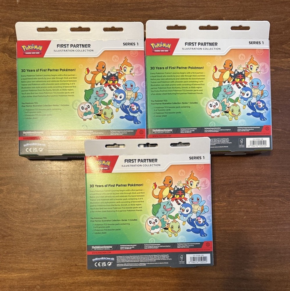 The Pokémon TCG First Partner Illustration Collection Box Series 1 is a special edition collectible featuring artwork from iconic Pokémon characters by illustrator Mitsuhiro Arita. This pack includes a total of 9 sealed packs, each containing standard-sized trading cards made of card stock. The set is part of the First Partner Pack series manufactured by Nintendo in the United States, catering to Pokémon TCG enthusiasts looking for promotional and booster packs for their collection. This limited edition collection offers a unique addition to any collector's edition.