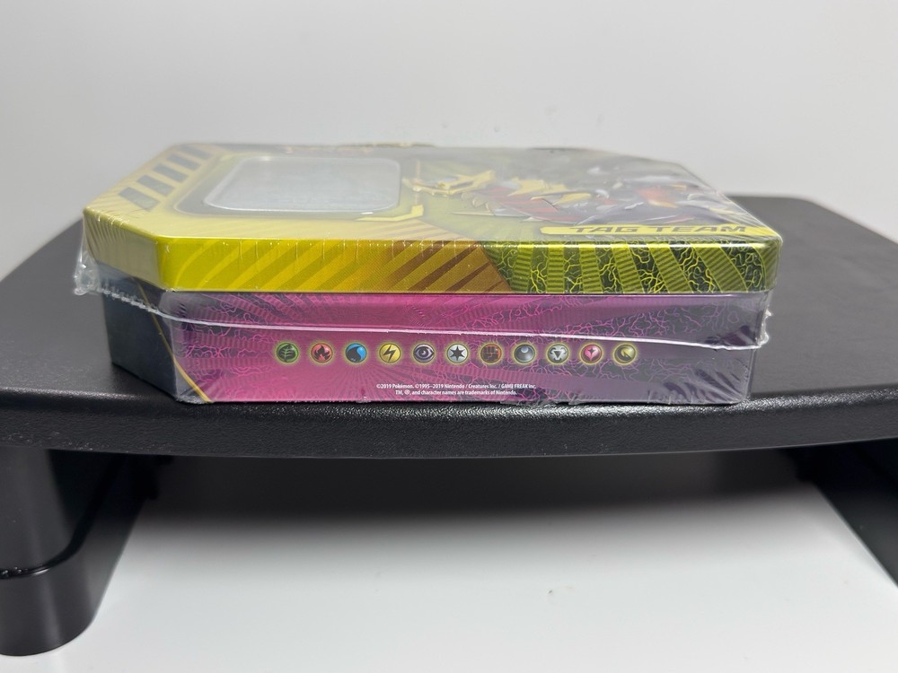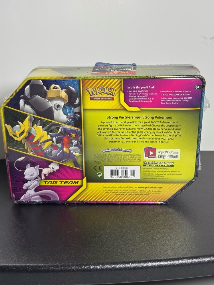 Pokémon TCG Garchomp & Giratina GX Power Partnership Tin 2019 – New Sealed Condition Brand New — Factory Sealed Shipping Buyer pays shipping 1-Day handling Ships in a sturdy box with padding to protect the tin Smoke-free, pet-free storage Key Features Official Pokémon TCG TAG TEAM Power Partnership Tin Features Garchomp & Giratina GX Factory sealed — no dents, rips, or broken seal Originally released in 2019 Includes booster packs + GX promo card inside Perfect collectible tin for display or investment Description This listing is for a Pokémon TCG Power Partnership Tin (2019) featuring Garchomp & Giratina GX . The tin is brand new and factory sealed , containing multiple booster packs and a beautiful TAG TEAM GX promo card. Whether you're a collector, investor, or sealed product enthusiast, this tin is an excellent addition to any Pokémon collection. Collector’s Note Sealed TAG TEAM-era tins have strong long-term value due to discontinued production and high-demand duo Pokémon. Tin edges and wrap are clean — ideal for sealed collectors. Small Business Note Thank you for supporting Declet Emporium , a family-run small business.
