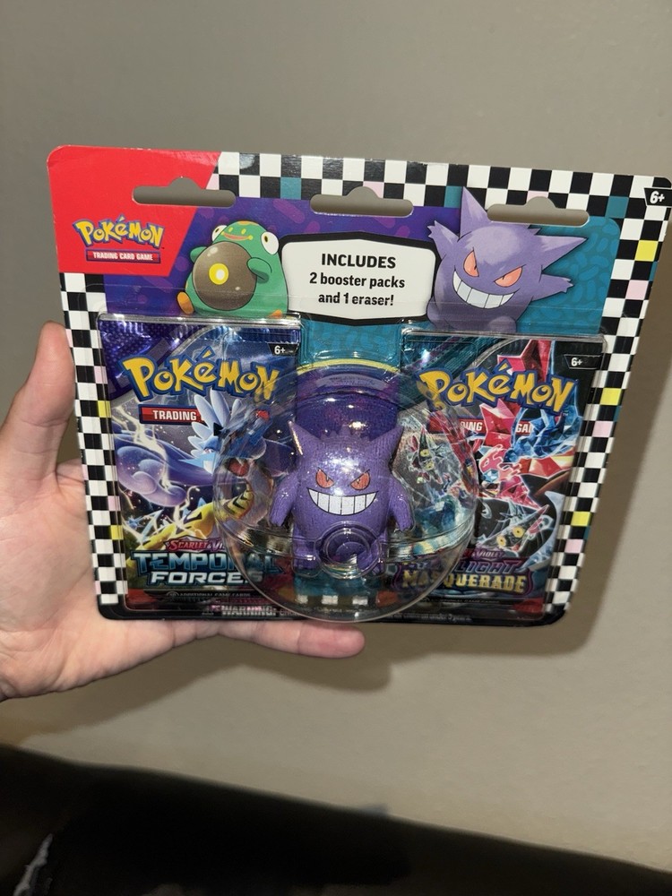 Brand New & Factory Sealed! This listing is for the Back to School Pokémon TCG Gengar Eraser Blister Pack. A fun and collectible item for fans of the mischievous ghost-type! 🎒 Includes: ✅ 2x Booster Packs (1 Temporal Forces + 1 Twilight Masquerade) ✅ 1x Gengar Eraser (perfect for school, desk display, or collecting) ✅ Sealed in retail packaging Great for collectors, Gengar fans, or anyone looking to open some Scarlet & Violet heat! These eraser packs are highly sought after and hard to find sealed. 📦 Ships safely, securely and quickly! 🎁 Check my other listings for Bellibolt & more Pokémon items!