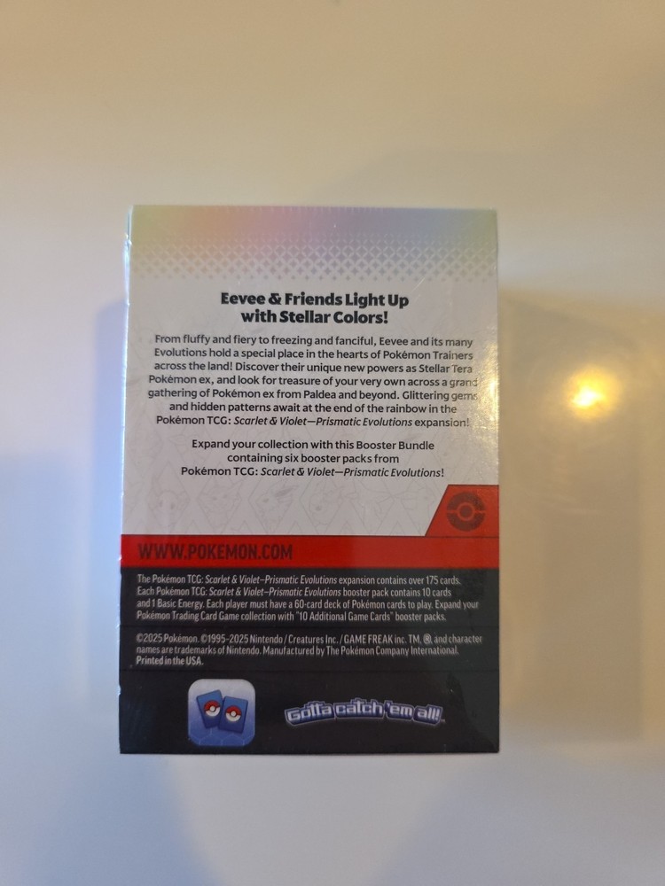 Pokémon TCG Scarlet & Violet Prismatic Evolutions Booster Bundle 6 Packs Sealed. Condition is New/Factory Sealed. Shipped with USPS Ground Advantage.