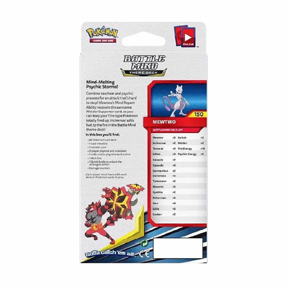 Pokémon TCG [Sun & Moon: Unbroken Bonds] - Battle Mind Theme Deck (Mewtwo) Condition: New Unleash the power of Mewtwo in the Pokémon TCG: Sun & Moon—Unbroken Bonds Battle Mind Theme Deck. As avid Pokémon fans know, catching them all involves collecting the trading cards, and this deck, themed around the Unbroken Bonds expansion, adds strategic depth to your collection. Identified by the iconic image of Mewtwo on both sides, this themed deck showcases a carefully selected list of cards, providing a sneak peek at the battle prowess within. Dive into the action with the exclusive Cracked Ice Holofoil Mewtwo card, a prized possession for enthusiasts. Inside the package, discover essential components like a card checklist, custom coin, 2-player playmat with a rulesheet, and a code for online play. The deck box ensures the safety of your cards, accompanied by a Quick Guide to unlock potent strategies and damage counters for a seamless gameplay experience. Combine the fiery intensity of Incineroar with Mewtwo's psychic prowess in the Battle Mind theme deck. Featuring 60 Pokémon cards, this deck is equipped with everything you need to master the game, including a metallic coin, online play access, and a Quick Guide to unravel the strategic intricacies. Dominate the Pokémon TCG arena with the Sun & Moon—Unbroken Bonds Battle Mind Theme Deck, where Mewtwo takes center stage in an epic fusion of heat and mind power. Browse what else we have in stock - thousands of toys, games, and other fun merchandise from Poggers, the best toy store in the world!