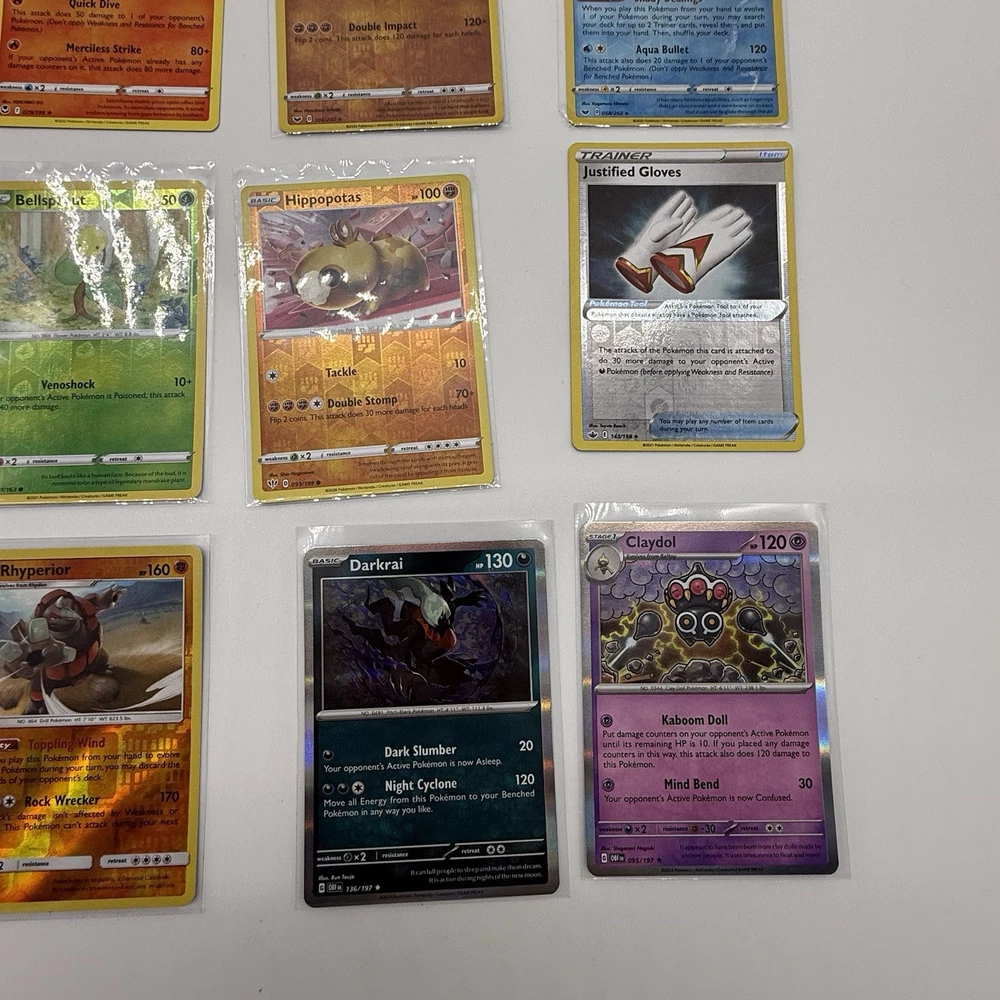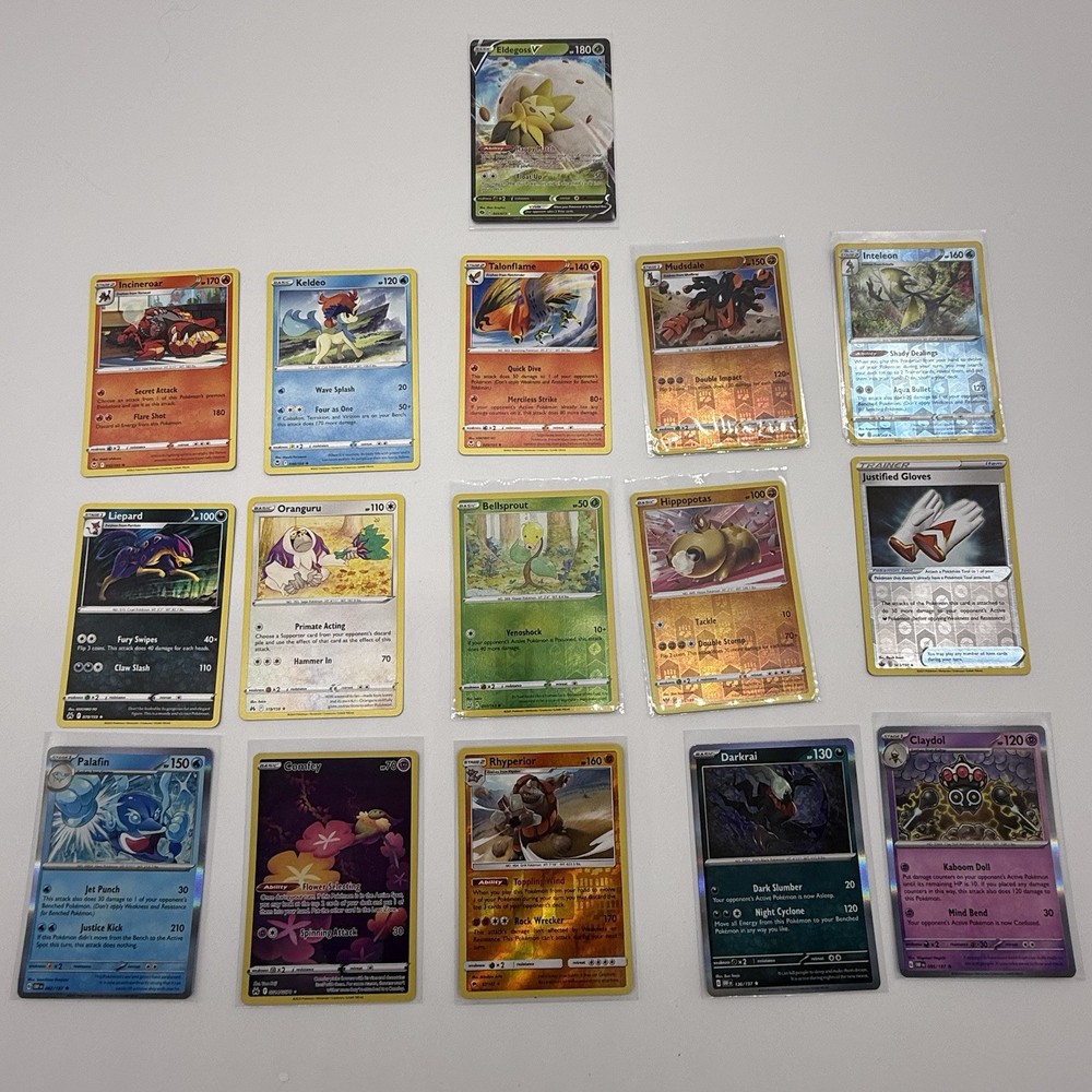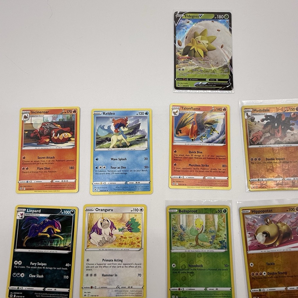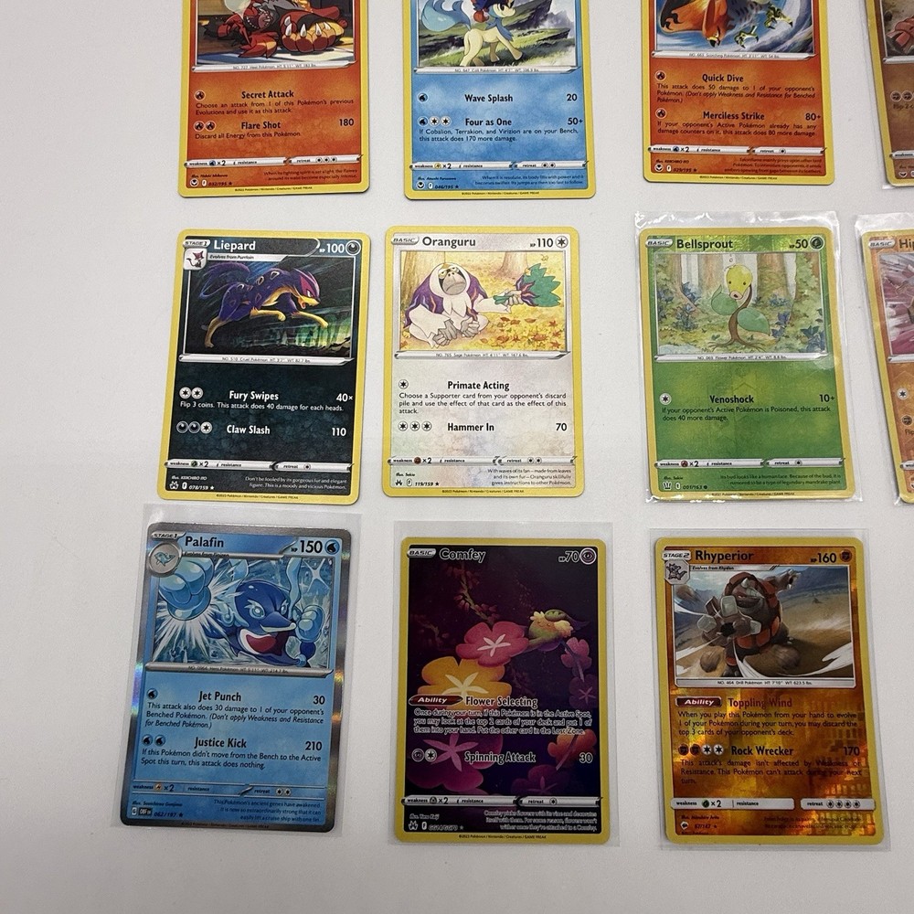 Age Level: 4+ Seller Notes: “Cards are in good condition.” Character: Blastoise, Charizard, Espeon, Gengar, Lucario, Mew, Mewtwo, Palkia, Pikachu, Rayquaza, Snorlax, Tyranitar, Venusaur Features: Exclusive, Extended Art, Full Art, Limited Edition, Prerelease, Promo, Special Edition, Stamped, Unlimited Language: English Finish: Foil, Holo, Regular Attribute/MTG:Color: Colorless, Dark, Dragon, Earth, Fighting, Fire, Grass, Lightning, Metal, Psychic, Water Set: Astral Radiance, Base Set, Base Set 2, Brilliant Stars, Cosmic Eclipse, Evolving Skies, Fusion Strike, Gym Challenge, Gym Heroes, Jungle, Neo Destiny, Neo Discovery, Neo Genesis, Neo Revelation, Pokémon GO, Scarlet & Violet - Obsidian Flames, Shining Fates, Sword & Shield, Sword & Shield - Battle Styles, Sword & Shield - Chilling Reign, Sword & Shield - Lost Origin, Sword & Shield - Silver Tempest, Team Rocket, Unified Minds, Vivid Voltage, crown zenith Manufacturer: Nintendo, Wizards of the Coast Card Size: Standard Card Type: Pokémon Material: Card Stock Autographed: No Game: Pokémon TCG Number of Cards: 52 Vintage: No