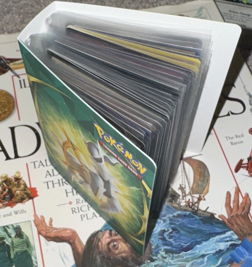 The listing is for a Pokemon binder with holo rare dragon and mage cards from Pokemon, Yu Gi oh, and Magic the gathering. Near mint and 30 cards total