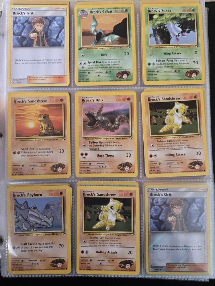 *Open to offers * 18 cards some are first edition Dive into the world of Pokémon with the iconic Brock's Binder, a must-have for enthusiasts and collectors alike. Featuring the mighty Rhydon, this cards size collectible is a throwback to the classic Pokémon TCG era. Designed for the age group of 8 and above, it's a nostalgic piece that brings the excitement of the game to your fingertips. Crafted by Nintendo, the card is printed on quality paper material, ensuring its durability despite its heavily played status. With English as the language of print, it makes for a perfect addition to any international collection. Proudly manufactured in Japan, this card is a testament to the rich legacy of the Pokémon Trading Card Game.