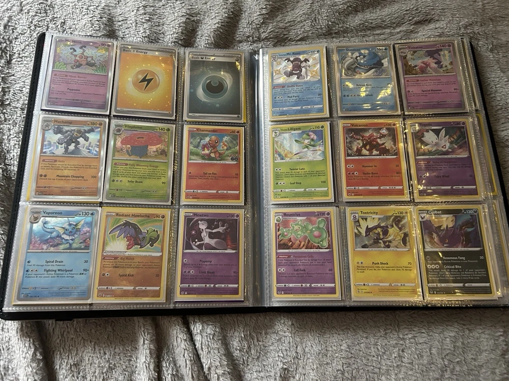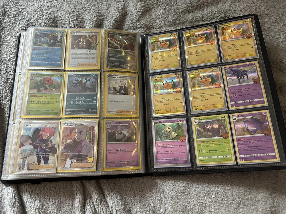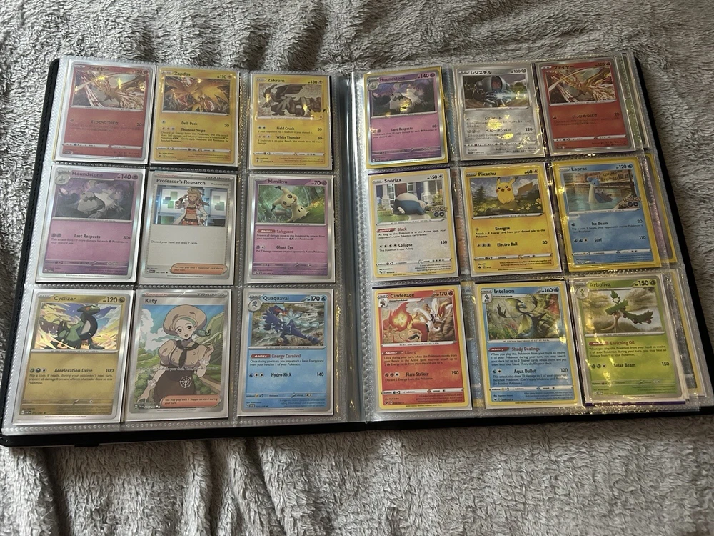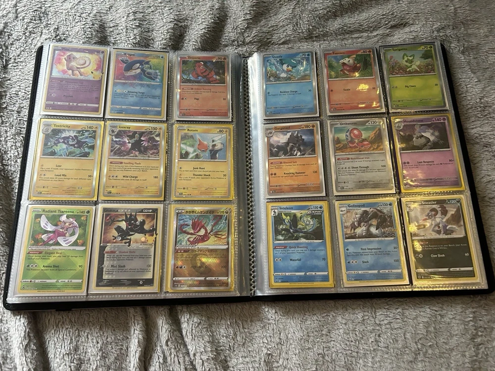 360 pokemon cards (all Holos) in binder, 18 giant pokemon cards- unplayed MINT, 2 evolution card sets, and a bag of pokemon figures. Sold as lot.