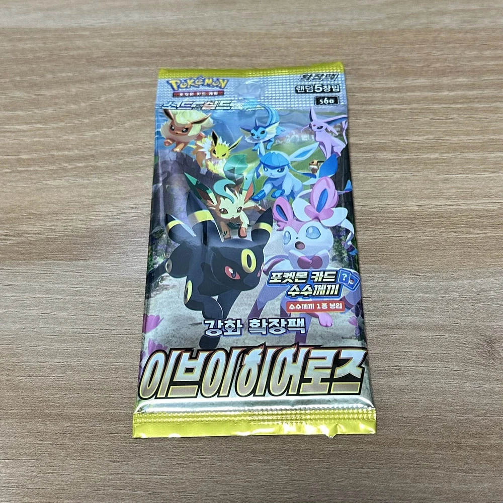 Pokémon TCG - Sword & Shield - Eevee Heroes [s6a] Booster Pack Brand NEW Factory SEALED Korean Version Card list includes the elusive "Moonbreon" Umbreon Alternate Art Secret Rare - e quivalent to the Evolving Skies English set DETAILS: Factory Sealed / Brand New Unopened factory sealed packaging x1 Pack Contains 5 Random Cards Each booster pack contains 5 random Pokemon TCG cards + 1 Quiz "Riddle Card" Cards are random as factory sealed. No guarantees for a specific card. This listing is for x1 booster pack. Ships within 1-3 working days.