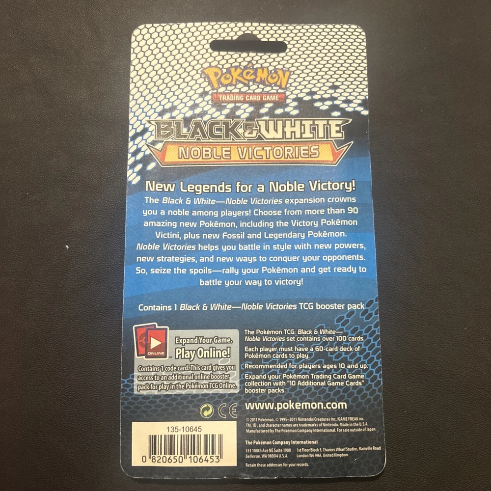 This Pokémon TCG booster pack features Druddigon artwork from the Noble Victories set. The single blister pack contains English cards and is factory sealed, ensuring the cards are in new condition. Each booster pack includes a selection of cards to enhance your collection or decks for gameplay. Perfect for collectors or players looking to expand their Pokémon card collection, this booster pack offers a chance to add unique Druddigon cards to your set.