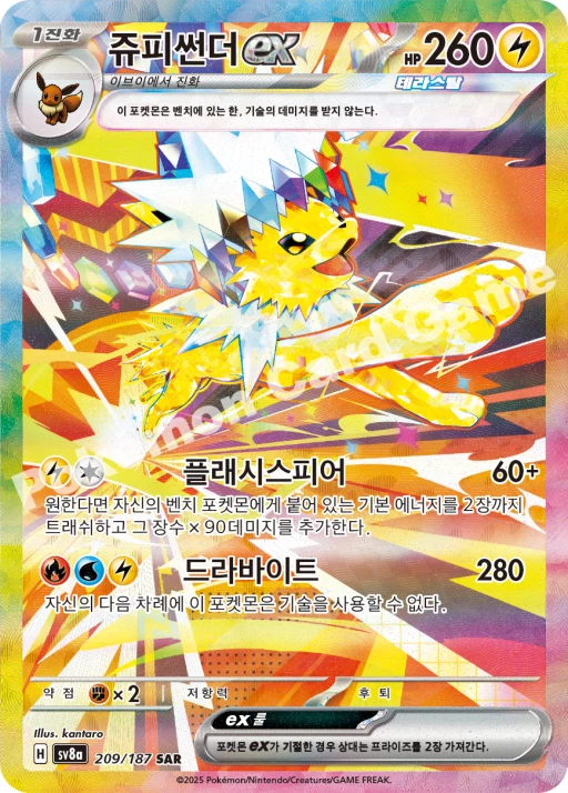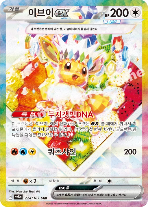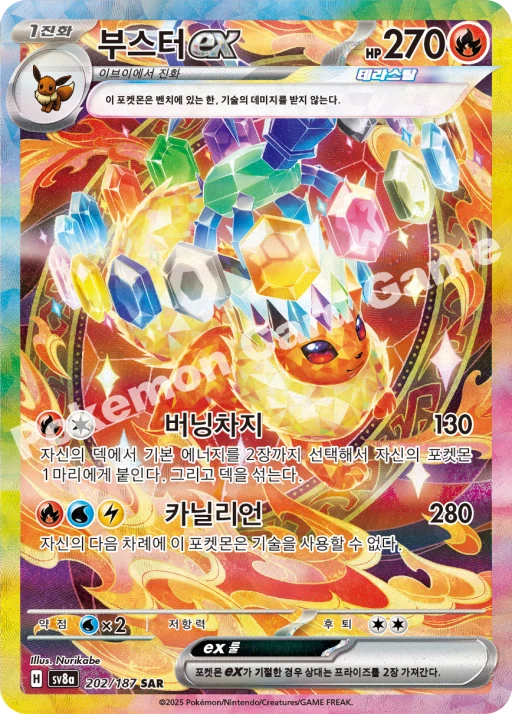 Pokémon TCG - Scarlet & Violet Series Terastal Festival ex [SV8A] High Class Expansion Set Booster Box Brand NEW Factory SEALED Korean Version Terastal Festival ex card list contains many sought after rare cards such as the Umbreon ex (Sunbreon), Leafeon ex, Flareon ex, Vaporeon ex, Glaceon ex, Jolteon ex, Espeon ex, Sylveon ex, Eevee ex Full/Alternate Art Special Illustration Rare - Special Art Rare (SAR). As well as Ceruledge ex, Roaring Moon ex, Bloodmoon Ursaluna ex, Terapagos ex Full/Alternate Art Special Illustration Rare - Special Art Rare (SAR). Pikachu ex Hyper Rare - Ultra Rare (UR) for example. Also includes Kieran, Lacey, Crispin, Janine, Drayton, Amarys Full/Alternate Art Special Illustration Rare Trainers. This set is equivalent to the Prismatic Evolutions English set and identical to the Terastal Festival Japanese set DETAILS: Factory Sealed / Brand New Unopened factory sealed packaging x1 Terastal Festival Booster Box Contains 10 Packs Factory sealed condition. Terastal Festival is a "High Class" expansion set with 10 packs per box—unlike standard sets with 30 packs per box. x1 Terastal Festival Booster Pack Contains 10 Random Cards / 1 Guaranteed Holo ex Card Each booster pack contains 10 random Pokemon TCG cards Each booster pack is guaranteed to have at least 1 ex holo card Cards are random as factory sealed. No guarantees for a specific card. This listing is for x1 booster box. Please check the quantity of the items before purchasing if you wish to purchase more! Orders are typically shipped within 3-5 working days (not to be confused with the delivery timeframe). SHIPPING INFO: Multiple orders are combined into one shipment. Shipped with Standard Shipping Tracked and typically takes 5-15 business days. CUSTOMS AND DUTIES: For buyers in the United States: Import duties and taxes are included in the item price or shipping cost. Items shipped to the U.S. are sent under the Delivered Duty Paid (DDP) method, which means all import-related charges are prepaid by us. You don’t need to pay any additional fees when your order arrives. For buyers outside the United States: Import duties, taxes, and charges are not included in the item price or shipping cost. These charges are the buyer’s responsibility. If VAT is paid through eBay, then you should not expect to pay it again upon arrival. Please check with your country’s customs office to determine what these additional costs will be before bidding or buying. Please reach out to us if you have any questions and we will be happy to sort things out for you!