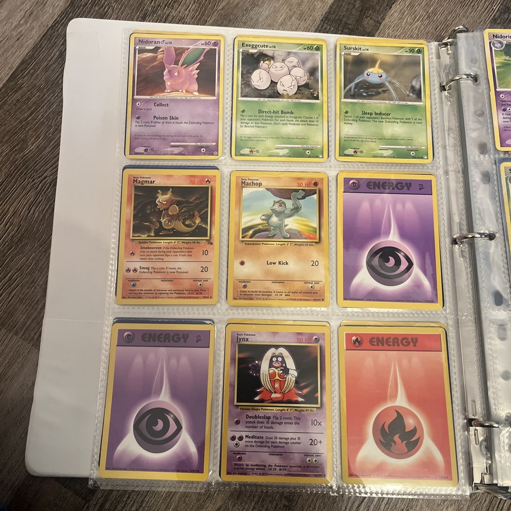 Pokemon collection from 1999 and so on throughout the years. Not into it just need the money. will ship whole binder in bubble wrap then you do what you want with it. it’s been sitting around for a while don’t need it. 450+ cards total in the binder.