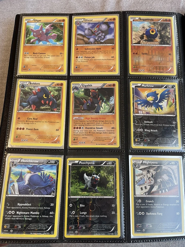 Pokemon cards with Eevee binder . Lightly used. It’s almost a complete set of XY Phantom forces It has most of the cards that are within the set It’s a good amount of collection with Ex cards included and Jumbo Charizard EX card. Gengar ex M Gengar Japanese card is moderately played. No returns. Final sale. Local pickup is available. This Pokemon Trading Card Game Eevee Binder/Portfolio comes with a set of cards and is perfect for collectors and fans of the franchise. The binder is designed with a 9-pocket system, providing ample storage space for your cards. The multicolor Eevee design is eye-catching and adds a touch of fun to your collection. The binder is compatible with standard-sized cards and is suitable for ages 13 and up. It is an Ultra PRO brand product, ensuring quality and durability. This item is perfect for those who love the Pokemon TV show and are interested in collecting cards.