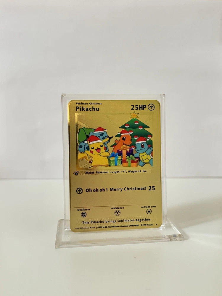 Pokemon Christmas Pikachu METAL GOLD CARD - Gift / Present / Fan Art - New Year