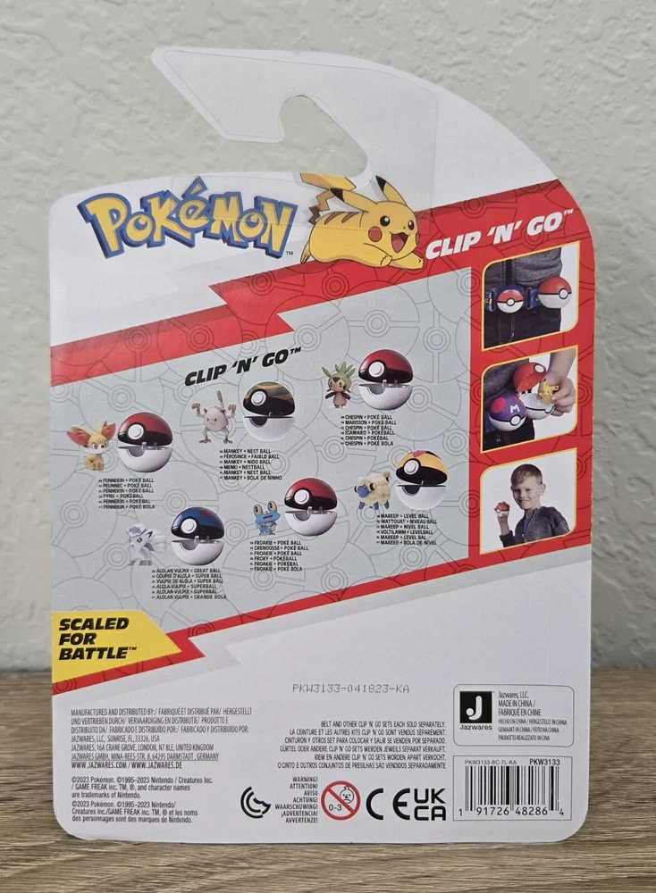 *Free shipping with USPS Ground Advantage. Ships ASAP. Packaged with care. Smoke-free home.* Please note that the Froakie figure is labeled as Mankey on the front label of box (manufacturer misprint). His MPN # is correct. Mankey figure is labeled as Froakie on the front label of box (manufacturer misprint). His MPN # is correct. Also, note that Mareep was shaken loose out of his position but is still in secure packaging. Please refer to the attached pictures. Get ready to battle with the complete set of Pokemon Clip 'N' Go Battle Figures from Wave 14. This set includes six premier balls and six figures of popular characters from the Pokemon franchise, including Fennekin, Mareep, Mankey, Alolan Vulpix, Chespin, and Froakie. Each figure is made from durable plastic and stands at a height of under 2 inches. This set is perfect for collectors and kids alike, and is sure to provide hours of imaginative play. With its TV, Movie & Video Games theme, and features like collectibility and boxed packaging, this set is a must-have for any Pokemon fan. Don't miss out on the chance to own this complete set of Pokemon Clip 'N' Go Battle Figures from Wave 14.