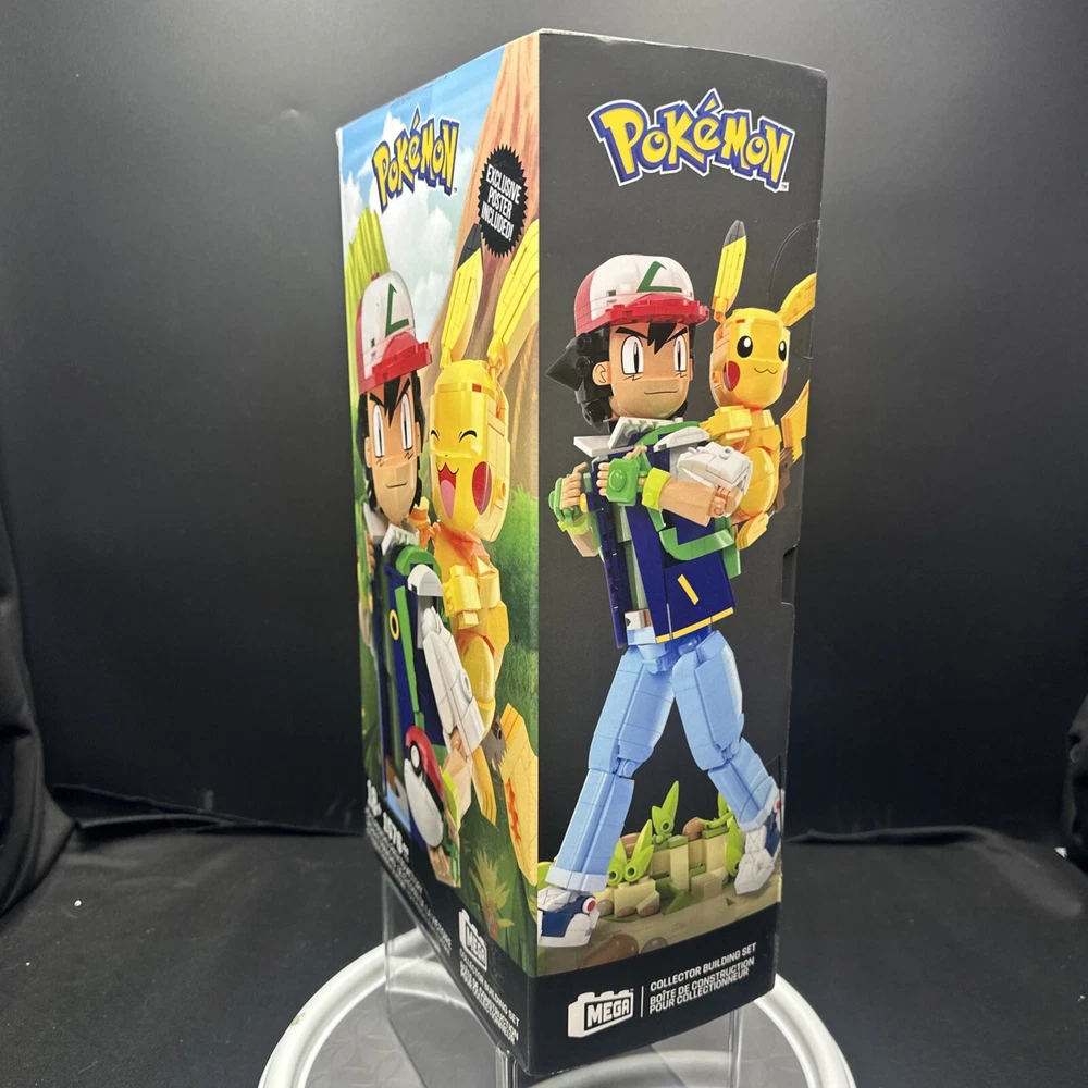 This Pokémon MEGA Collector Building Set features 1576 pieces to create Ash and Pikachu figures. Released in 2023, the plastic blocks come in a box with the theme "Ash & Pikachu: Path to Victory." Suitable for ages 18 and up, the set is part of the Mega Block Collector Building series, showcasing the Pokémon character family. Made by MEGA, this officially licensed product is designed for fans of the Pokémon franchise.