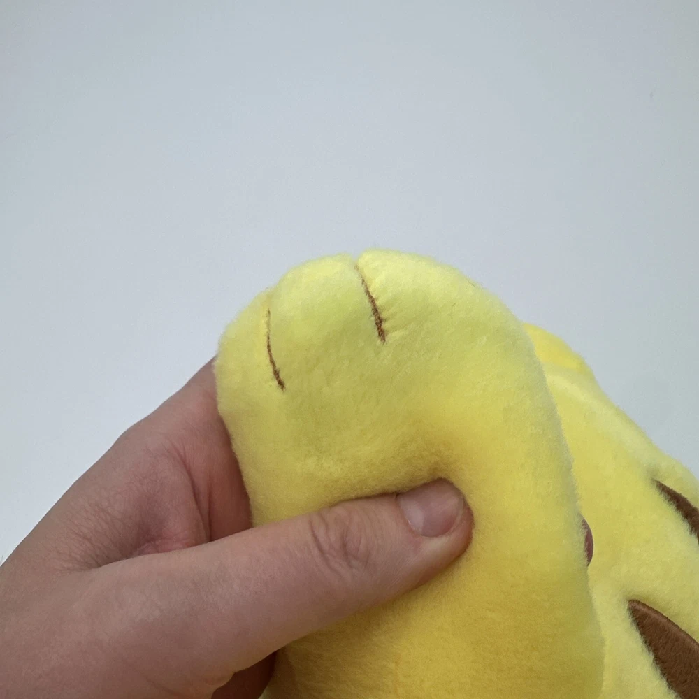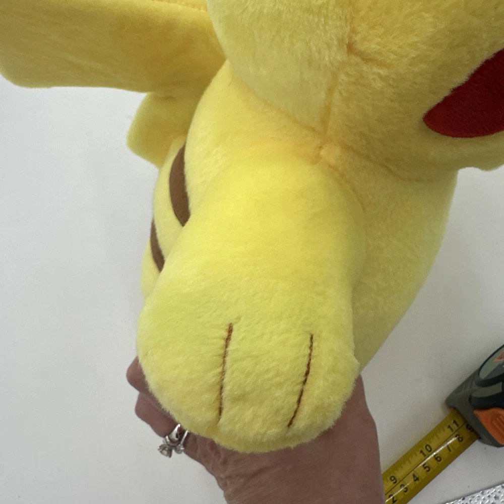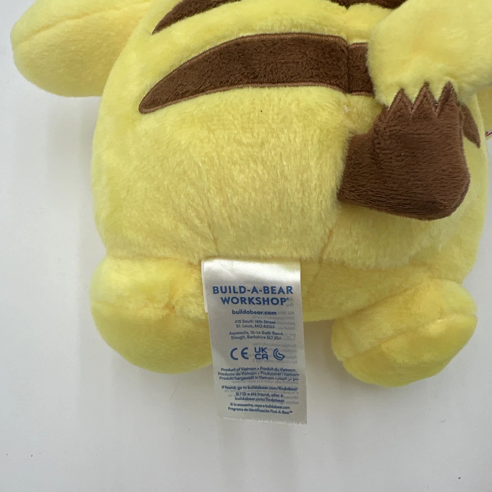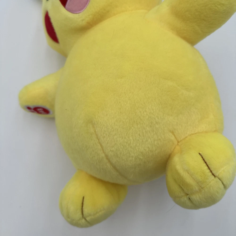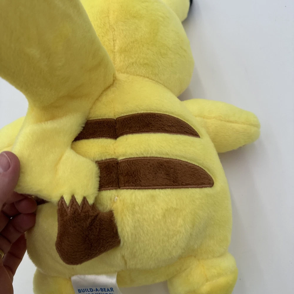 Right paw has slight discoloration see photos. Stuffed animal talks too. π This Pikachu plush toy from Build-A-Bear Workshop is a must-have for any Pokemon fan. Its bright yellow color and cute design will surely bring a smile to your face. Measuring at 18 inches, this medium-sized stuffed animal is perfect for snuggling and playing with. The toy belongs to the Pokemon character family and is made of high-quality materials. It is perfect for collectors and kids alike who want to add a touch of fun to their collection. See the details section for further information.