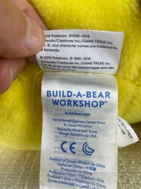 Antique: No Occasion: All Occasions Signed: No Bear Color: Yellow Country/Region of Manufacture: China Theme: Cartoon & TV Character Features: Unboxed Size: 15 in Brand: Build-A-Bear Workshop Eye Color: Black Item Height: 16 in Handmade: No Character: Pikachu Type: Plush Bear Material: Polyester Fibers Time Period Manufactured: 2010-2019 Vintage: No Franchise: Build A Bear and Pokemon Represented Age Level: 8-11 Years Personalize: No Number of Items: 1 Year Manufactured: 2016 Animal Species: Bear Collection: Pokemon Build a Bear