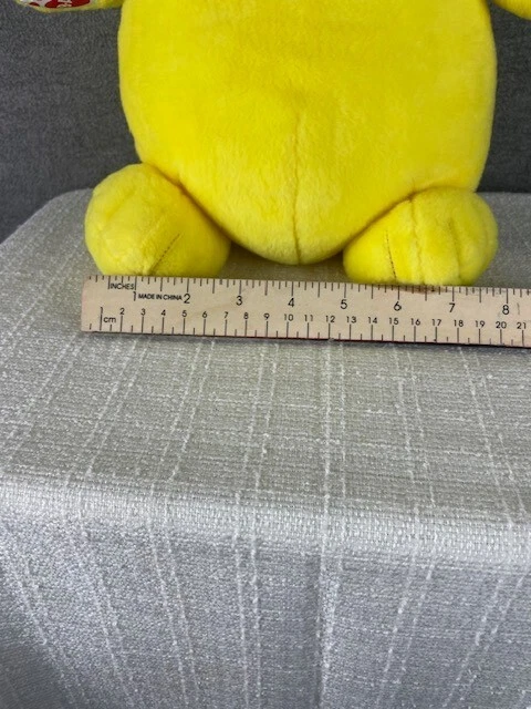 This adorable 15 inch Build-A-Bear Workshop plush bear is dressed up as the lovable character Pikachu from the Pokemon franchise. Made with polyester fibers, it's perfect for all occasions and age levels, from children ages 8-11 to Pokemon collectors and fans of all ages. The bear is unboxed and in excellent condition, ready to be added to your collection or given as a gift. It features a yellow fur color, black eyes, and has the Build-A-Bear Workshop brand logo on its paw. Don't miss out on this rare opportunity to own a piece of Pokemon history!