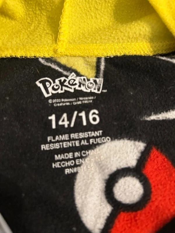 Get your little Pokémon fan ready for bed with these adorable Pikachu Kids 14/16 Hoodie Union Suit One Piece Pajamas in Black and Yellow. Made of 100% polyester fleece, these pajamas are cozy and comfortable for all-night wear. The long sleeve design and zip closure ensure a snug fit, while the vibrant yellow color and Pikachu character detail add a fun touch to the bedtime routine. Perfect for Christmas or holiday nights, these one-piece pajamas are a must-have addition to any young Pokémon enthusiast's sleepwear collection.