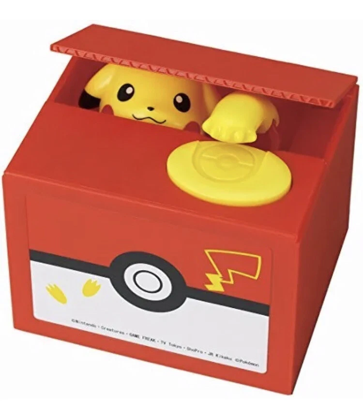 Pokemon Pikachu Moving Electronic Coin Money Piggy Bank Box Nintendo Game Freak. The bank is in good working condition. It takes two AA batteries that are not included. The item will ship out safely and securely the same or next business day.
