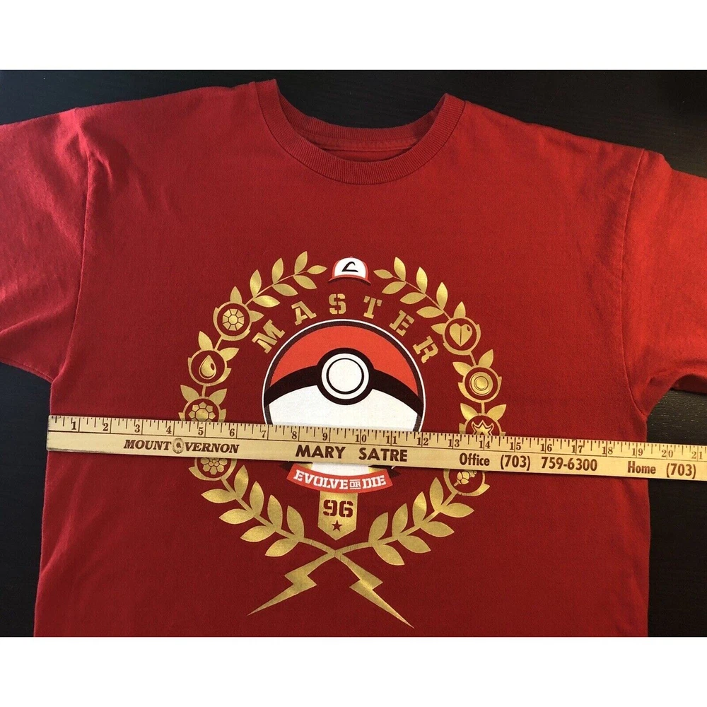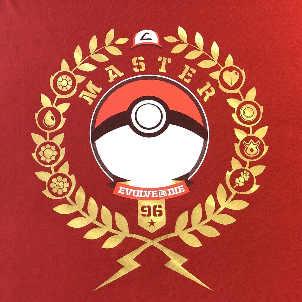 Pokemon PokeMaster League Status EVOLVE OR DIE Pikachu PokeBall TeeFury Medium Lay Flat Measurements * Pit to Pit - 19 1/2" * Shoulder to Hem - 27 1/2" * Arm - 7 3/4"