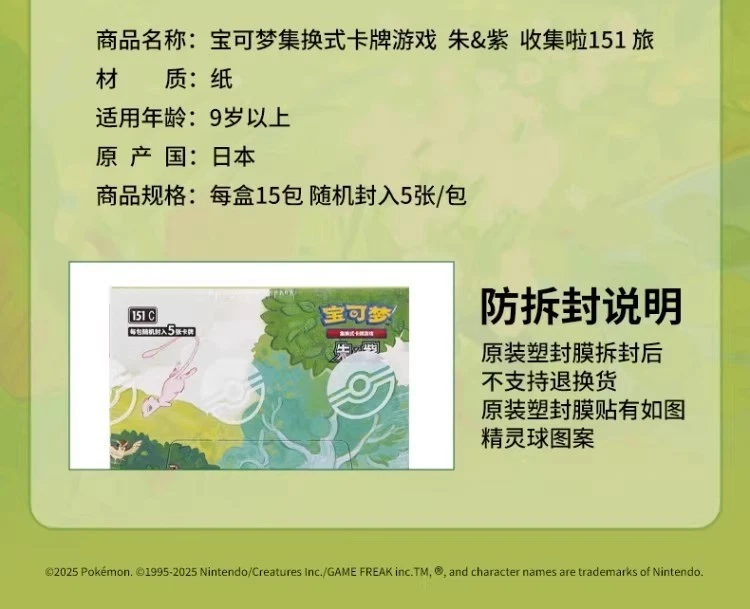 Pokemon S-Chinese Collection: Game VS Card 151 Journey Jumbo Fat Booster Box New Features: Features: 100% official original sealed Packing: 6 sheet s /pack , 20 packs/box Main material: Paper Shipping: Orders will be processed and shipped within 1-4 business days after payment is confirmed. International shipping times vary by destination, typically ranging from 7 to 20 business days. You can track the logistics online using the provided tracking number Returns: If a return or exchange is requested due to buyer's preference for unopened items, the buyer is responsible for all shipping costs involved. Once the original factory seal or sealed box is opened, the item is considered non-returnable unless there is a major printing or manufacturing defect. Returns due to quality issues will only be accepted after we receive the returned item and verify the defect