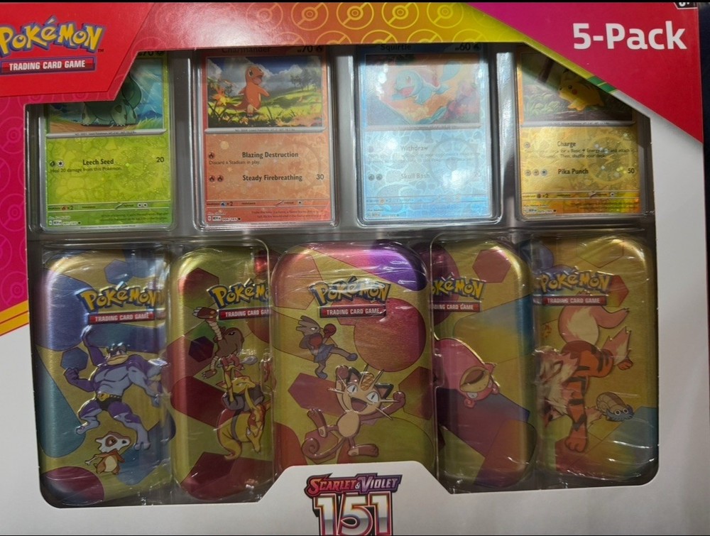 Pokemon Scarlet & Violet - 151 (5-Pack) Mini Tins w/ 4 Promo cards Costco Bundle. (Bundle styles may vary)