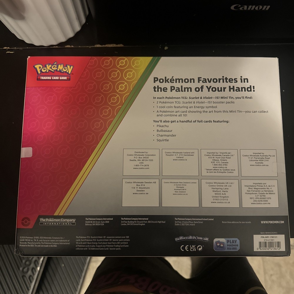 Dive into the vibrant world of Pokémon TCG with the Scarlet & Violet mini tins, featuring a collection of your favorite characters like Gengar and Machamp. This set includes 10 packs, each packed with the potential, adding a thrilling layer to your gameplay. With a total of 151 cards to discover, these packs are a treasure trove for enthusiasts and collectors alike. Each pack comes in English and boasts the standard card size, perfect for seamlessly integrating into your existing collection. Manufactured in the United States by Nintendo, these tins are crafted from quality cardboard material, ensuring durability and a premium feel. The included booster packs offer a fresh experience with every draw, promising hours of strategic fun for players and collectors.