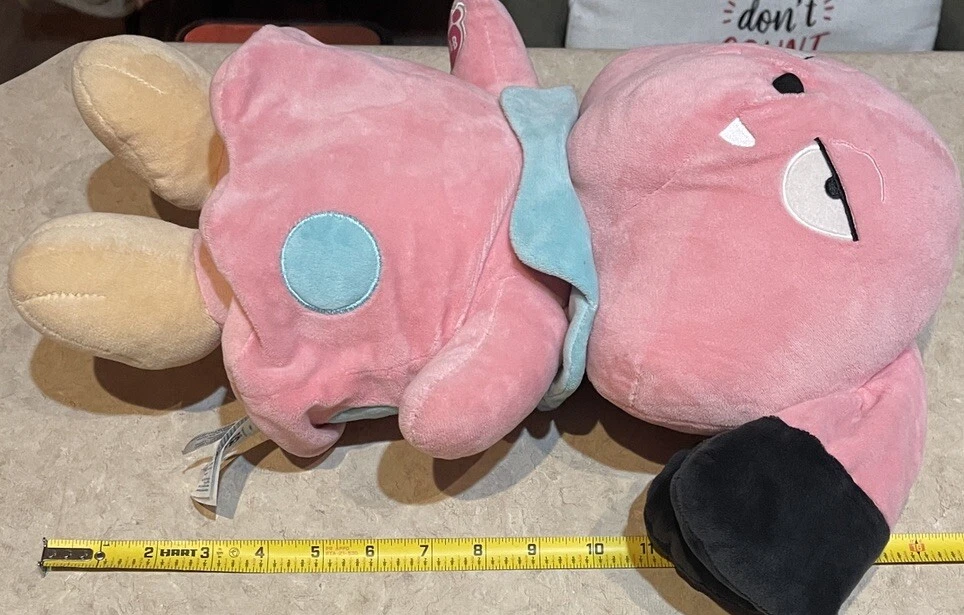 This is a Pokemon Snubbull plush toy from Build-A-Bear Workshop, released in 2019. The 17-inch pink bear features the character Snubbull from the Pokemon franchise. This plush is an original, retired item without packaging, making it a collector's piece for Pokemon fans. The toy is made of black plush material with no sound feature, making it a unique addition to any Pokemon or plush collection. This plush is in good preowned condition with little sign of wear. Please see ALL photos for a better idea on condition, any measurements, or details to the plush.