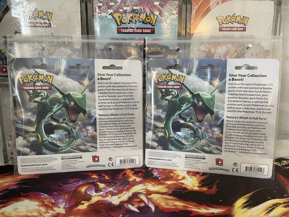 Elevate your Pokémon TCG collection with the Sun & Moon: Celestial Storm 3-Pack Blister featuring the majestic duo, Tapu Lele & Tapu Koko. Each pack offers a fresh chance to uncover these captivating characters in stunning detail, crafted for both collectors and players alike. With cards in English and manufactured in the United States by Nintendo, this set is a must-have for enthusiasts eager to enhance their game or showcase. The Celestial Storm set is renowned for its captivating artwork and strategic gameplay elements. Suitable for ages 6 and up, this single blister pack contains a assortment of cards that may include Tapu Lele and Tapu Koko, adding a celestial touch to your collection. Whether you're looking to play or collect, this Pokémon TCG offering promises a delightful experience for all. ***Up for sale are (2) Sun & Moon Celestial Storm/Guardians Rising 3 pack blisters, you will receive one of each promo version of the 3 pack blisters. You will receive the exact blisters pictured above, these have been well cared for. These will be shipped quickly and safely! If you have any further questions or concerns feel free to ask!! Thank you!!*** ***BE SURE TO CHECK OUT OUR OTHER POKEMON LISTINGS WE HAVE ALOT TO OFFER!!***