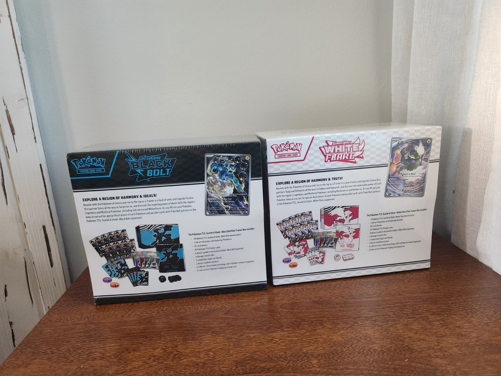 Pokemon TCG Black Bolt & White Flare Elite Trainer Box ETB Set. This officially licensed product is part of the Pokémon TCG series and includes a total of 2 boxes sealed.