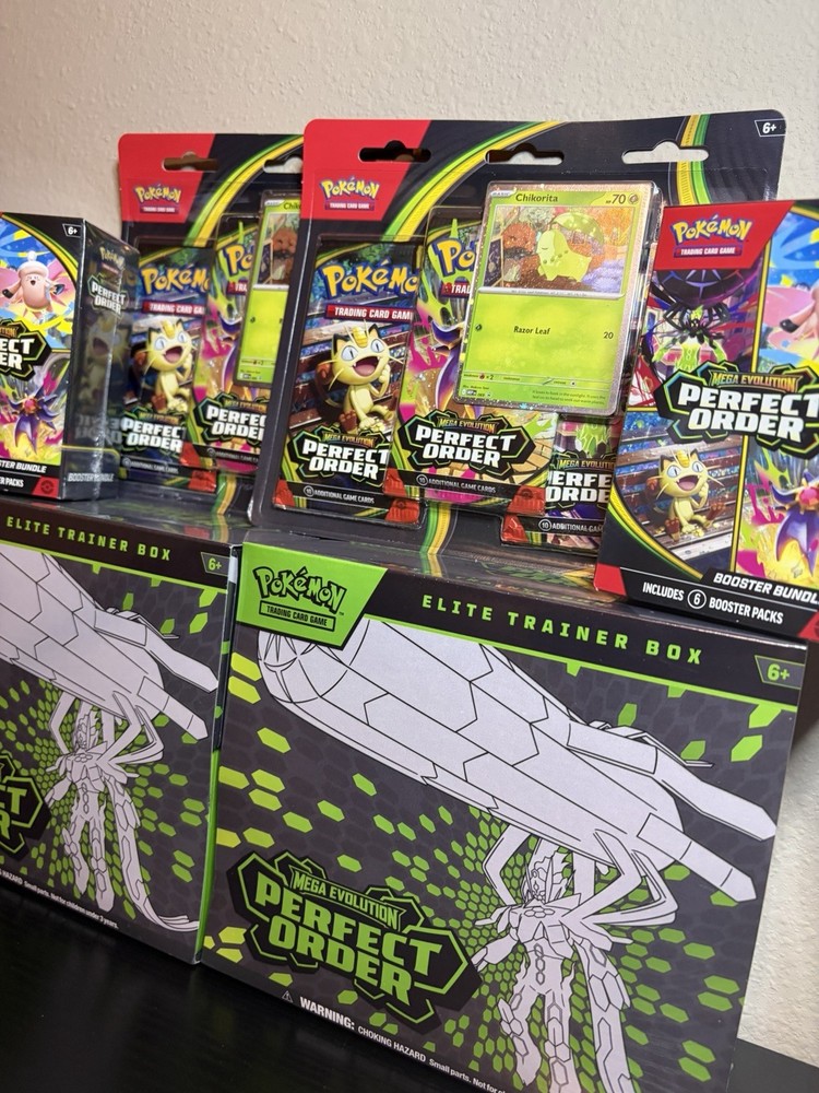 Brand new factory sealed! This lot includes: 2 Perfect Order Elite Trainer Boxes 2 Perfect Order Booster Bundles 2 Perfect Order 3-pack blisters All in hand ready to ship!
