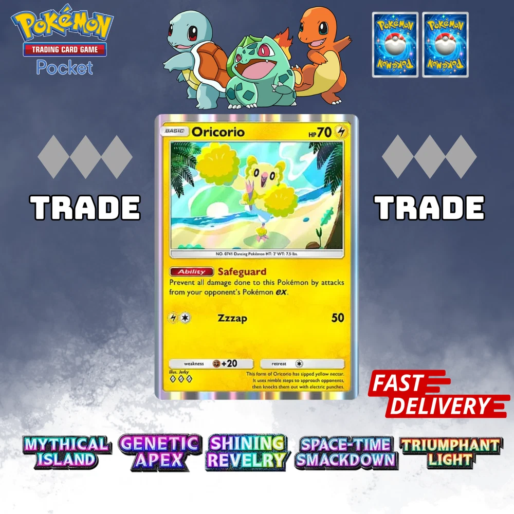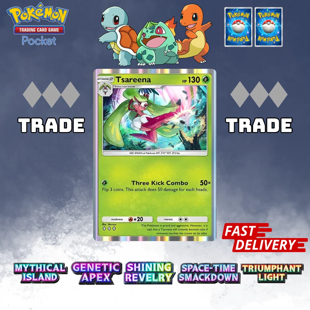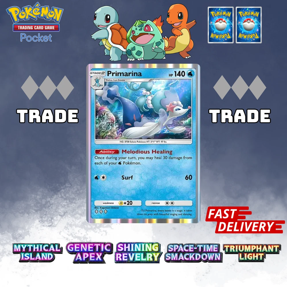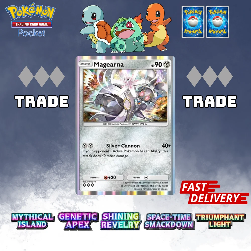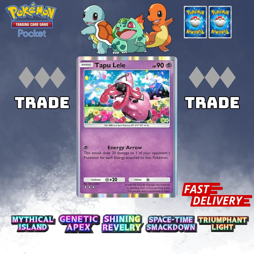 This listing item will be send to your existing Pokemon TCG Pocket via Trade (Digital items) All items, all cards/account use English/Global servers. Does not use cheats or bots (Chinese language, and has a lot of haurglass in each account), all played legal officially and manually using a smartphone and safe from being banned in the future. All cards are available, 1- 4 Diamond, 1Star, supporter, item, all available. (Please check my store) (new event cards cannot be traded yet) REMEMBER BEFORE YOU BUY IT Once your payment is successfully processed, you will be contacted for us to exchange our Friend ID or you give a note Friend ID before chekout. Please ensure you have 1 unwanted Pokémon Card for trade, 0-500 TRADE TOKEN and at least 1 TRADE STAMINA to facilitate this deliver y.