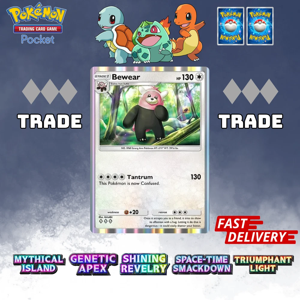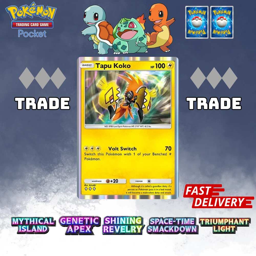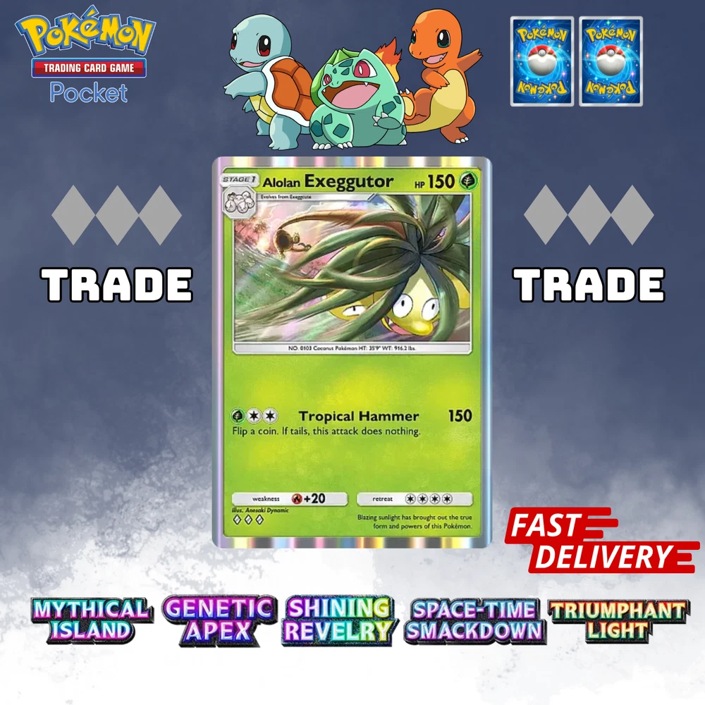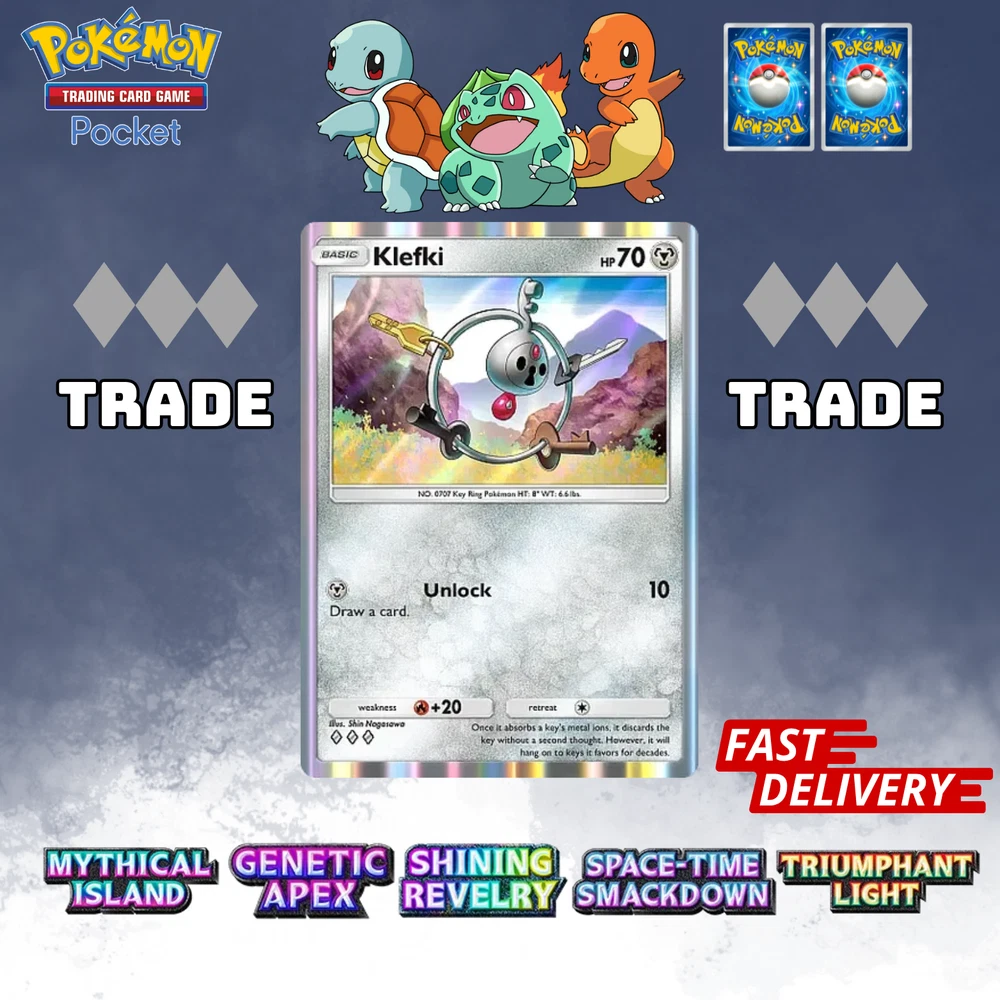 This listing item will be send to your existing Pokemon TCG Pocket via Trade (Digital items) All items, all cards/account use English/Global servers. Does not use cheats or bots (Chinese language, and has a lot of haurglass in each account), all played legal officially and manually using a smartphone and safe from being banned in the future. All cards are available, 1- 4 Diamond, 1Star, supporter, item, all available. (Please check my store) (new event cards cannot be traded yet) REMEMBER BEFORE YOU BUY IT Once your payment is successfully processed, you will be contacted for us to exchange our Friend ID or you give a note Friend ID before chekout. Please ensure you have 1 unwanted Pokémon Card for trade, 0-500 TRADE TOKEN and at least 1 TRADE STAMINA to facilitate this deliver y.