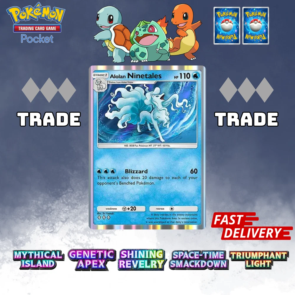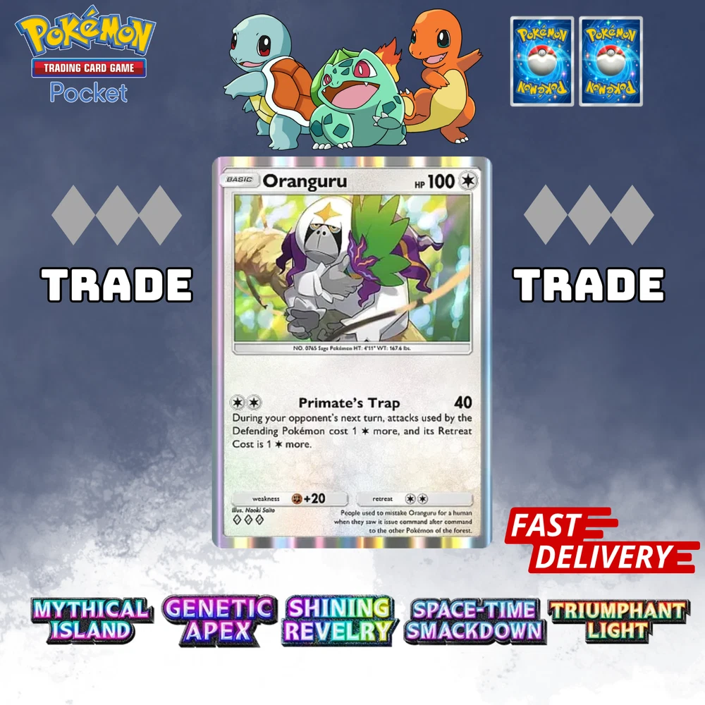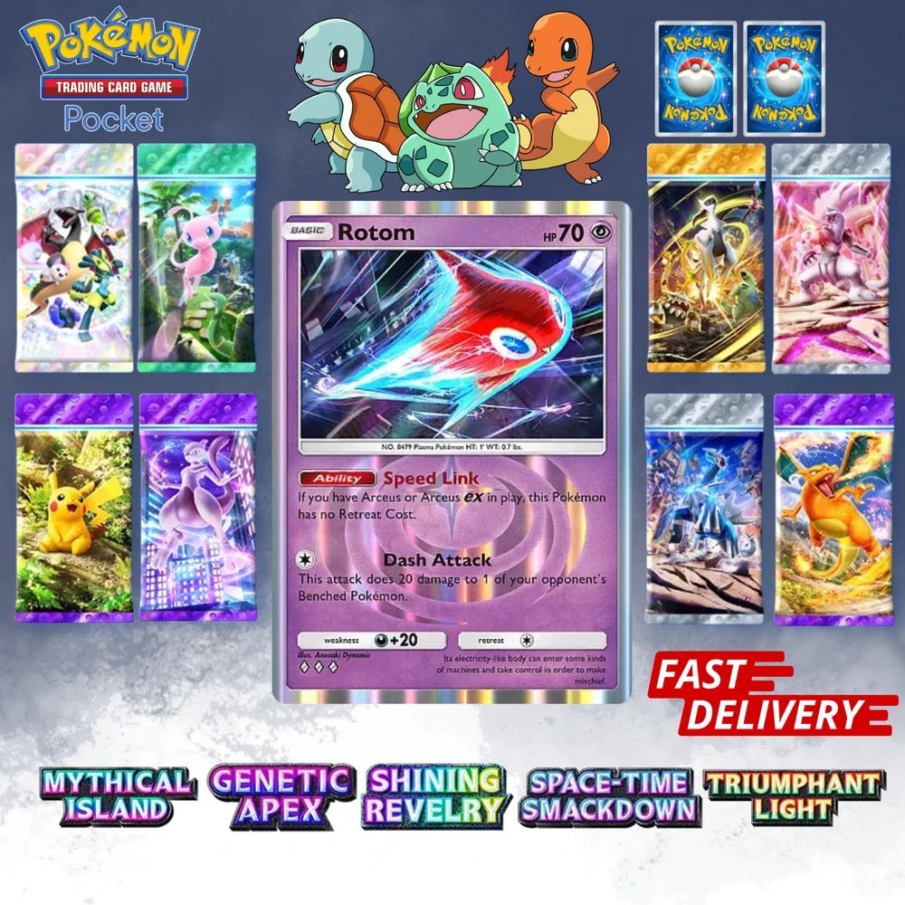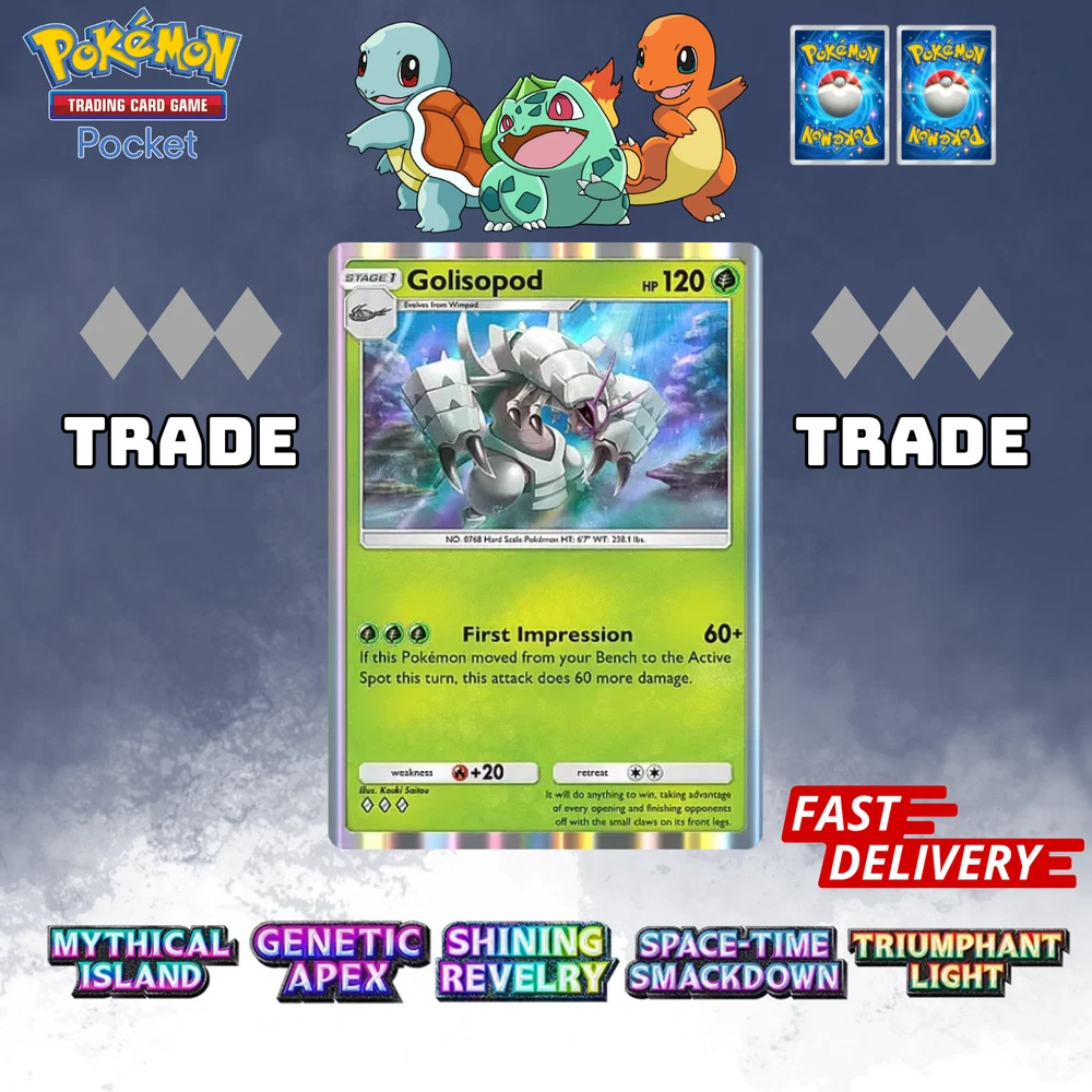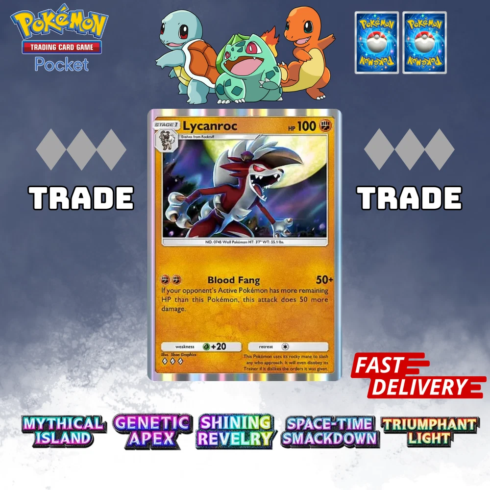 This listing item will be send to your existing Pokemon TCG Pocket via Trade (Digital items) All items, all cards/account use English/Global servers. Does not use cheats or bots (Chinese language, and has a lot of haurglass in each account), all played legal officially and manually using a smartphone and safe from being banned in the future. All cards are available, 1- 4 Diamond, 1Star, supporter, item, all available. (Please check my store) (new event cards cannot be traded yet) REMEMBER BEFORE YOU BUY IT Once your payment is successfully processed, you will be contacted for us to exchange our Friend ID or you give a note Friend ID before chekout. Please ensure you have 1 unwanted Pokémon Card for trade, 0-500 TRADE TOKEN and at least 1 TRADE STAMINA to facilitate this deliver y.