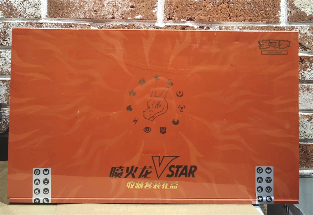 Pokemon TCG S-Chinese 2024 Exclusive Charizard VSTAR Collection Set Gift Box New Product Description Gift Box Content:Gift Box Content: - 1 Charizard Vstar Special Holo Promo Card - 1 Chairzard Theme Binder - 1 Charizard Theme Storage Box - 1 Charizard Theme Card Protection Brick - 2 Jumbo Booster Packs (25 cards/) of CS6ac Booster Pack - 2 Jumbo Booster Packs (25 cards/) of CS6bc Booster Pack - 2 Booster Pack (6 cards/) of CS5.5C Enhanced Pack