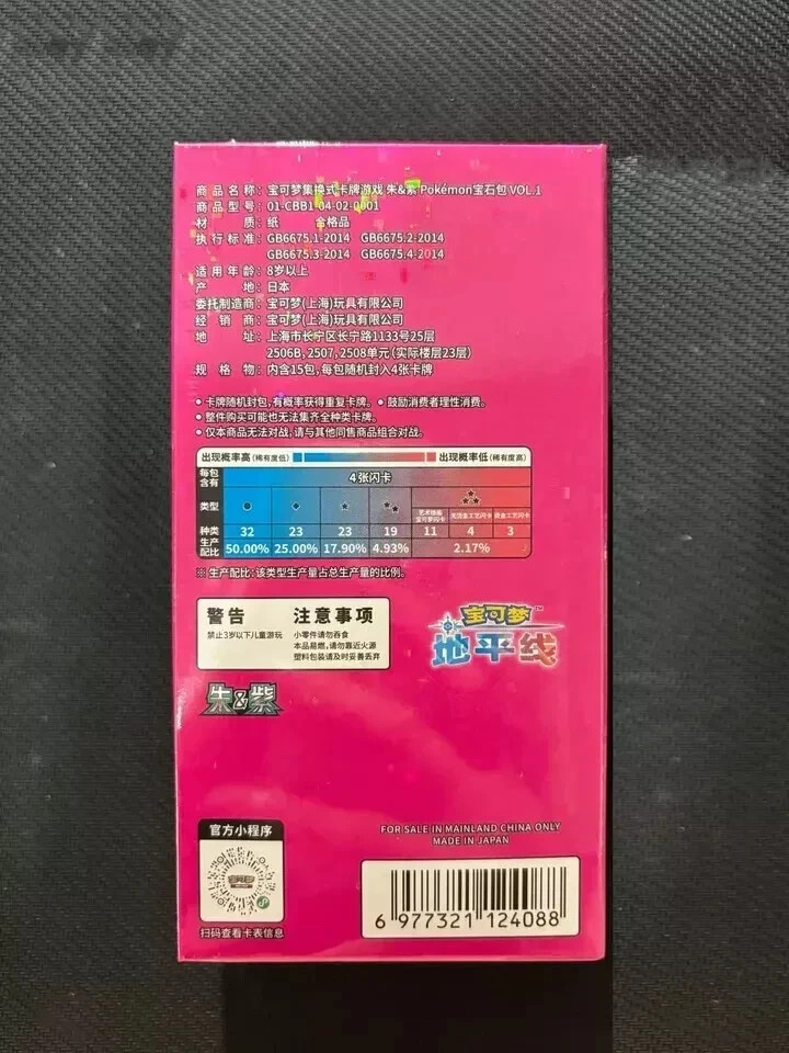 Nintendo Official Pokemon Chinese Products: " Pokemon TCG S-Chinese Horizons Gemstone Gem Pack Booster Box CBB1C Sealed New " - Chinese Version Condition : Brand New / Factory Sealed Content : 1 Box (15 Packs, 4 cards in each pack,60 card in one box) Language: Simplified Chinese (China Mainland) Category: Pokemon Card 1st Scarlet & Violet 100% Nintendo authentic pokemon products ! Please note this is Chinese Version ! Chinese Pokemon Card has blue back like English version. 100% authentic nintendo products, made in Japan, released in China Mainland.