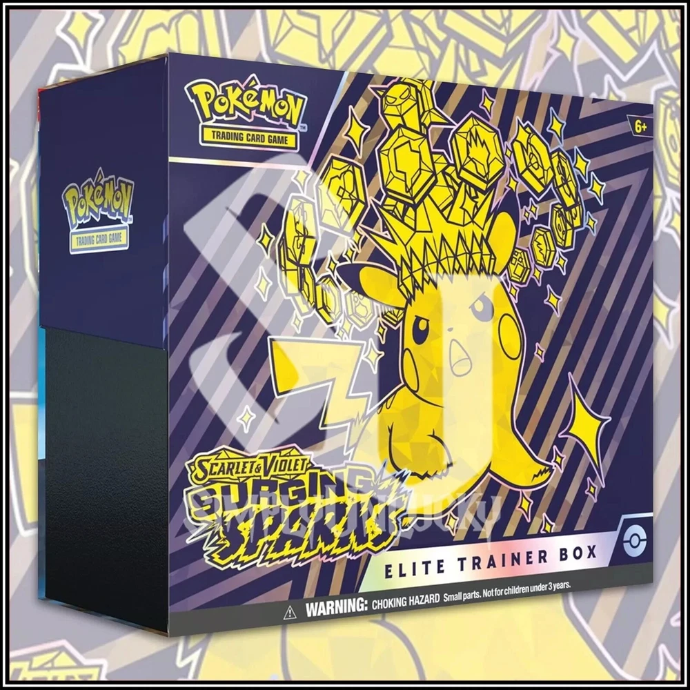 SHIPS 11/8 The Pokémon TCG: Scarlet & Violet—Surging Sparks Elite Trainer Box includes: • 9 Pokémon TCG: Scarlet & Violet—Surging Sparks booster packs • 1 full-art foil promo card featuring Magneton • 65 card sleeves • 45 Pokémon TCG Energy cards • A player’s guide to the Scarlet & Violet—Surging Sparks expansion • 6 damage-counter dice • 1 competition-legal coin-flip die • 2 plastic condition markers • A collector’s box to hold everything, with 4 dividers to keep it organized • A code card for Pokémon Trading Card Game Live Thank You for Shopping! OH BABY!!! SU CORP Cancellation Policy: Due to an increased amount of cancellation requests, we have updated our cancellation policy and are only allowing cancellations within the first hour after purchase, as per eBay's recommendation, unless it is a presale item. Cancellations are not accepted for pre-sale items. We will not respond to cancellation requests made outside of the hour window. When purchasing an item with our store, buyers are entering a contract-- this is a legally-binding agreement to purchase the item from us-the seller. Buyers are responsible for reading the full item listing, including the title and description with our store's policies. For pre-sales, please see our presale policy. For returns, please see our return policy. Pre-Sale Policy All pre-sales of products are final. We do not offer refunds/cancellations for anything purchased before the release date. When purchasing a pre-sale product, the market value of an item is known to fluctuate. This makes the pre-sale a shared risk for both the seller and buyer. When purchasing a pre-sale with SimplyUnlucky, the buyer agrees to follow through with their transaction. However, the buyer may return their pre-sale item once it arrives. For returns, please see our return policy. Return Policy Due to an increased amount of return requests, we have updated our return policy. Buyers will be required to pay a 25% restocking fee for all returns. We do not currently have the staff to focus solely on returns. This policy will help us provide a more positive experience for serious buyers. We do not accept returns on pre-sales items (This is because the product has not yet been shipped to you) If you would like to return a pre-sale product once it is shipped to you please contact us. Refunds will be sent upon receipt of the return item. For cancellations, please see our cancellation policy. For pre-sales, please see our presale policy. We don't allow cancellations on Auctions Boxes from cases will always be factory sealed, in situations boxes will be taken from the manufactured case and put into flat rate shipping boxes. Please Contact Us if you would like your case to stay sealed and we can inform you of the additional shipping cost. We do not combine shipping for auctions unless 4 or more are purchased. When 4 or more auctions are purchased, the buyer may request a shipping discount. Buyers may receive a shipping discount of up to 50%.