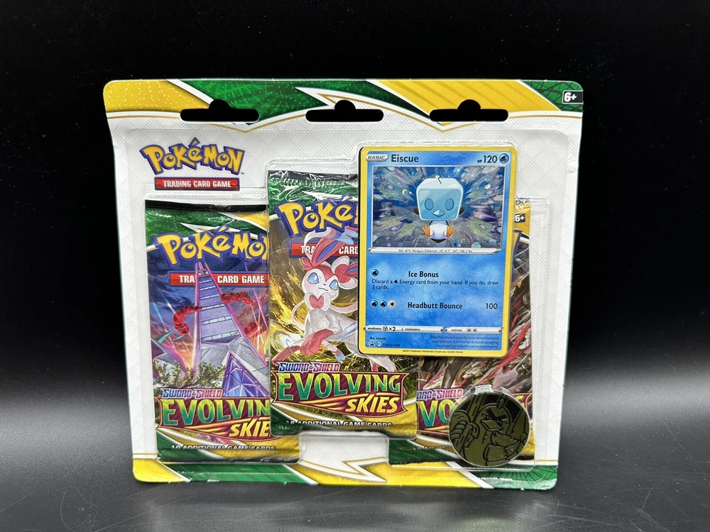 Pokemon TCG Sword & Shield Evolving Skies 3 Pack Blister + Eiscue Promo Card..