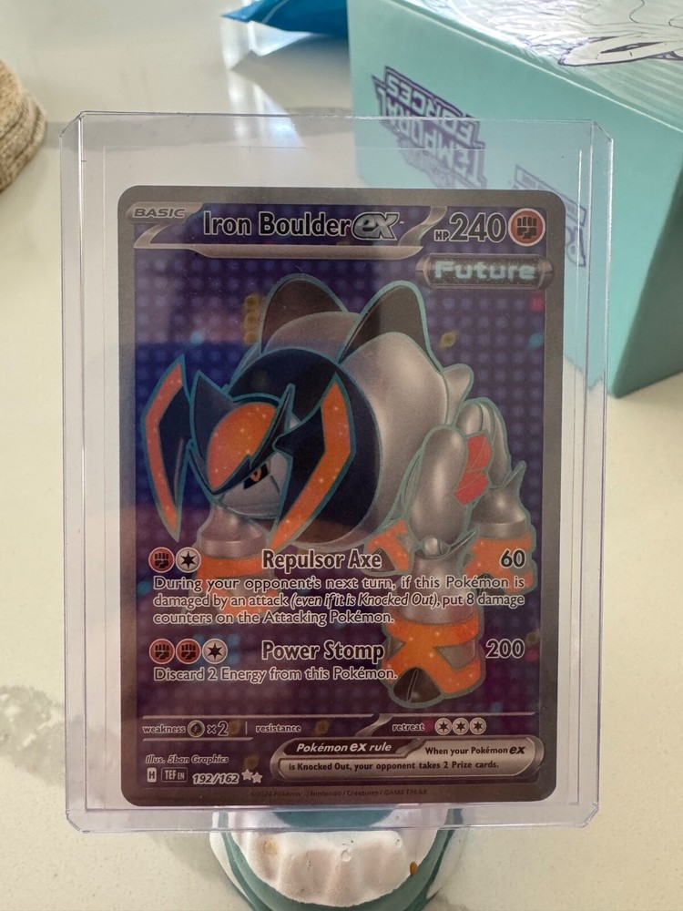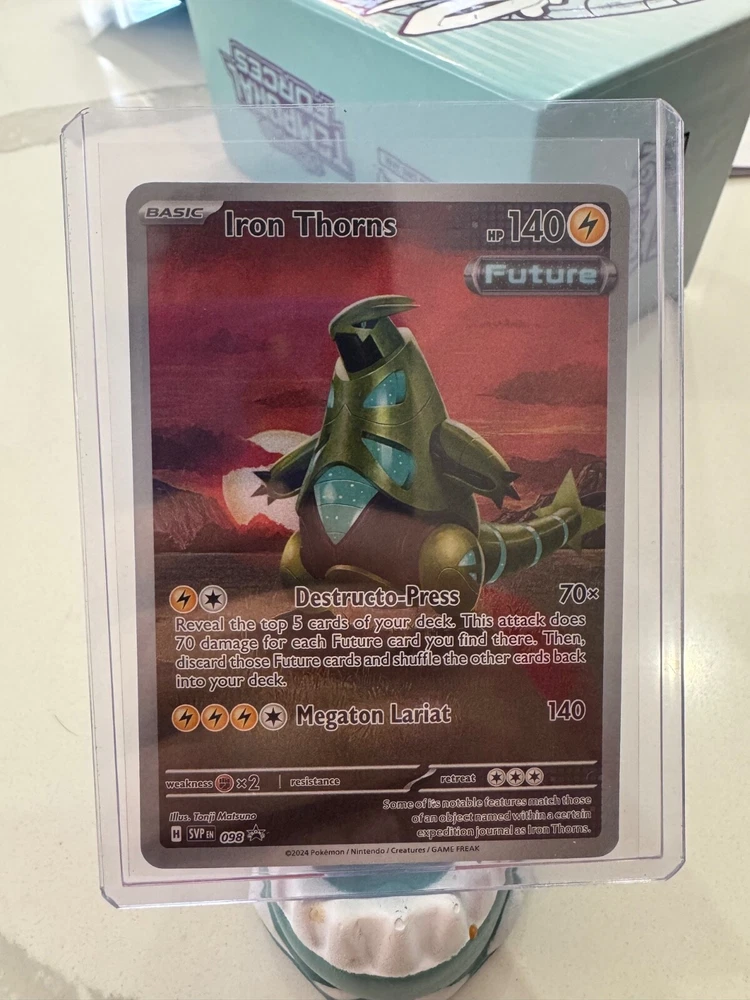 Set: temporal forces Card Type: Pokémon Game: Pokémon TCG Age Level: 4+ Language: English Number of Cards: 4 Character: Gengar ex, Iron Boulder ex, Flutter Mane Promo, Iron Thorns Promo