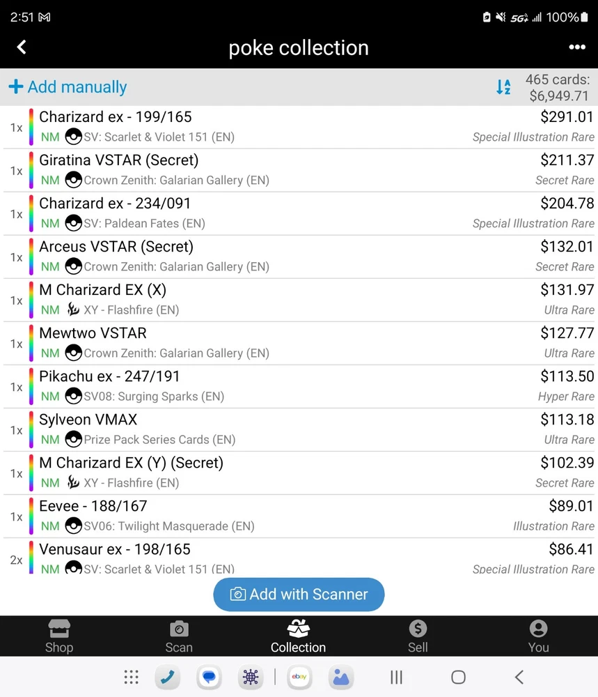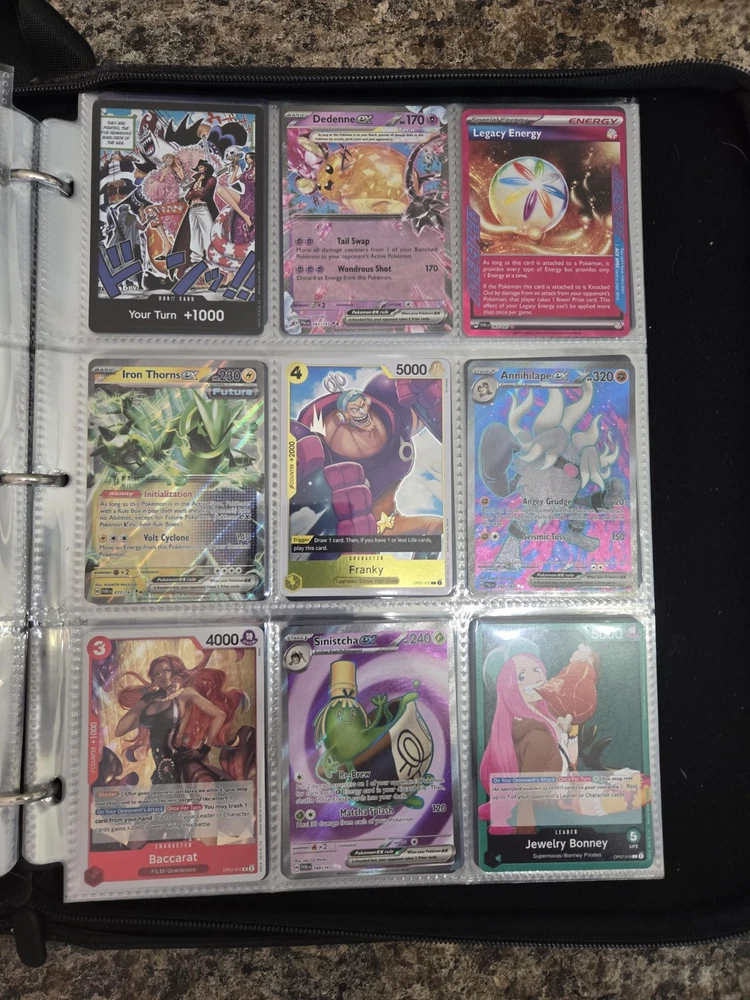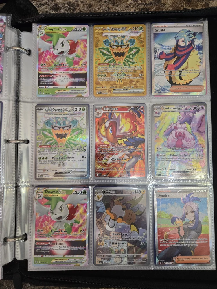 Pokemon collection TCG vaules are from just pokemon there also lorcana and one piece mixed in. singles and binder I can show more photos if need just message me photos shown are all that would fit on ebay post 465 pokemon cards totaling $6,949 according to TCG