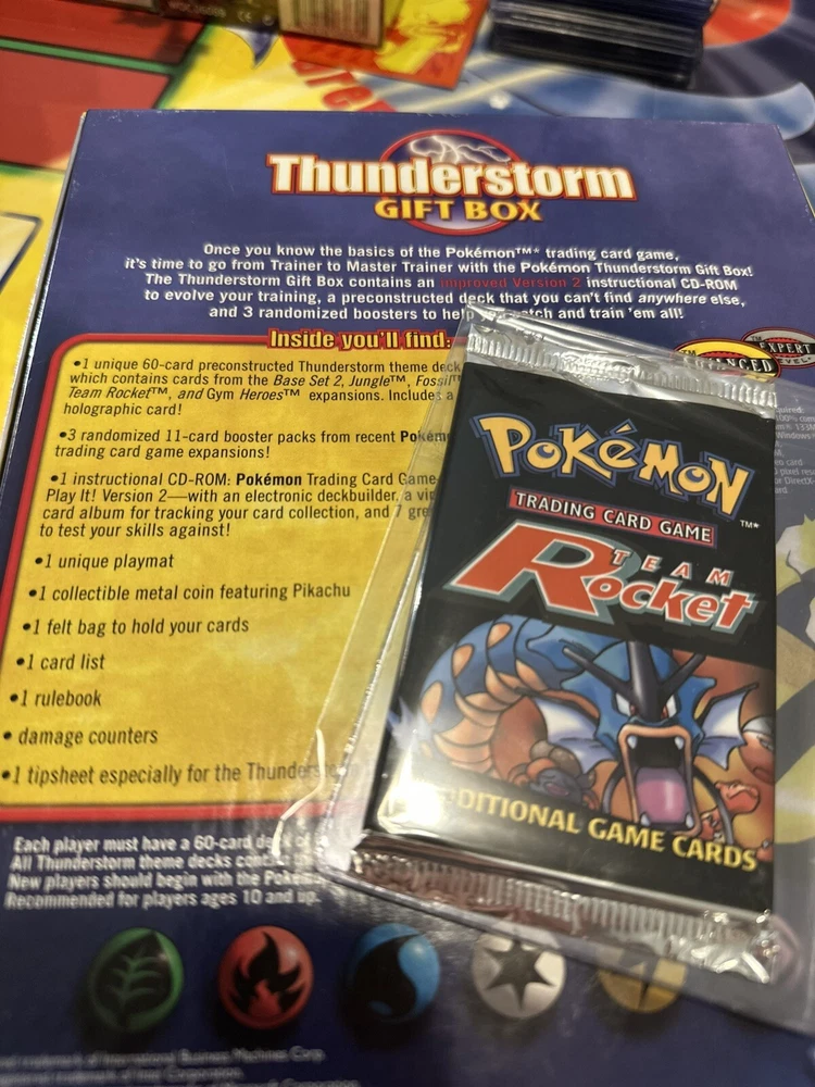 This is a super minty team rocket pack that came from a thunderstorm box like the one pictured. This listing is just the new sealed team rocket pack. but it’s an absolutely beautiful artwork from a reputable seller, authentic never opened straight from the box. Hard to find packs this clean. Considered keeping for an artwork display alone but am letting it go! Auctions weekly, stay tuned!