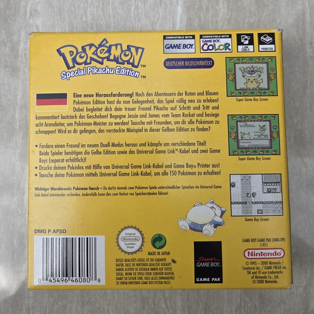 Pokémon Gelb in OVP mit allen Beilagen in sehr gutem Zustand (s. Fotos) Wurde kürzlich von der Fa. Pixel Grading (DE) ratifiziert. Lt. EU-Gesetz keine Gewährleistung, Garantie und/oder Rücknahme.