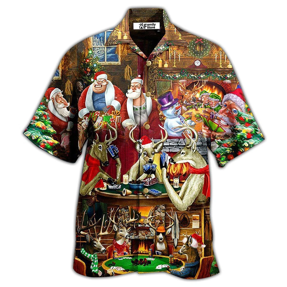 Poker Gambling Santa And Friends Play Poker Style Hawaiian Shirt