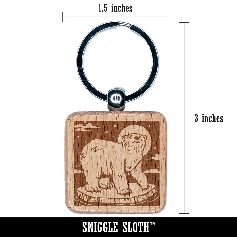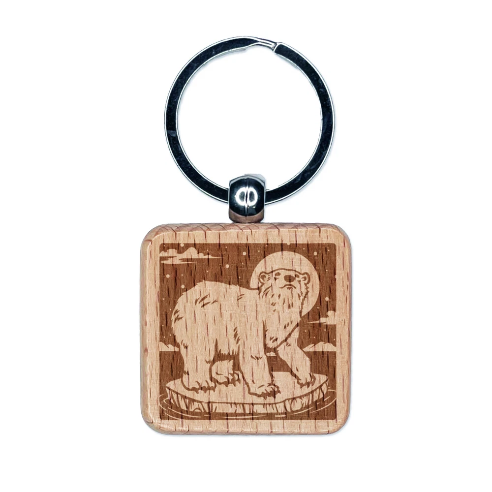 Polar Bear Chilling on Iceberg Engraved Wood Square Keychain Tag Charm