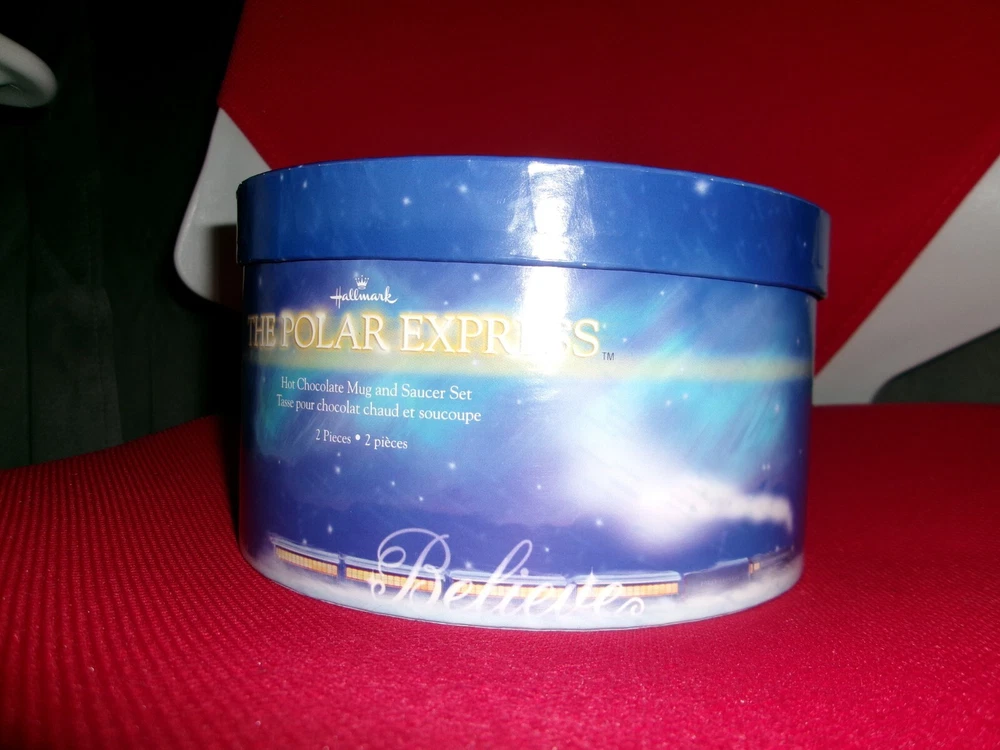 The product is a brand new hot chocolate mug and saucer set from the "Polar Express" franchise. The round box contains a medium-sized multicolor porcelain cup and saucer, featuring a Christmas theme. Manufactured in 2004 in China, this collectible item is designed for a single user and is not considered vintage. Perfect for enjoying a cozy hot beverage during the holiday season, this set is a festive addition to any kitchen or home decor.