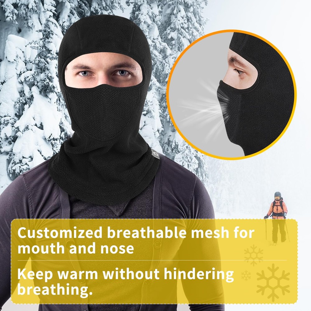 This balaclava is a winter essential—super warm, soft polar fleece keeps my face and neck protected from harsh winds and cold. Fits comfortably, stays in place during skiing, and the breathable fabric prevents fogging. Perfect for outdoor activities, and the unisex design looks great. Highly recommend for anyone braving the cold!