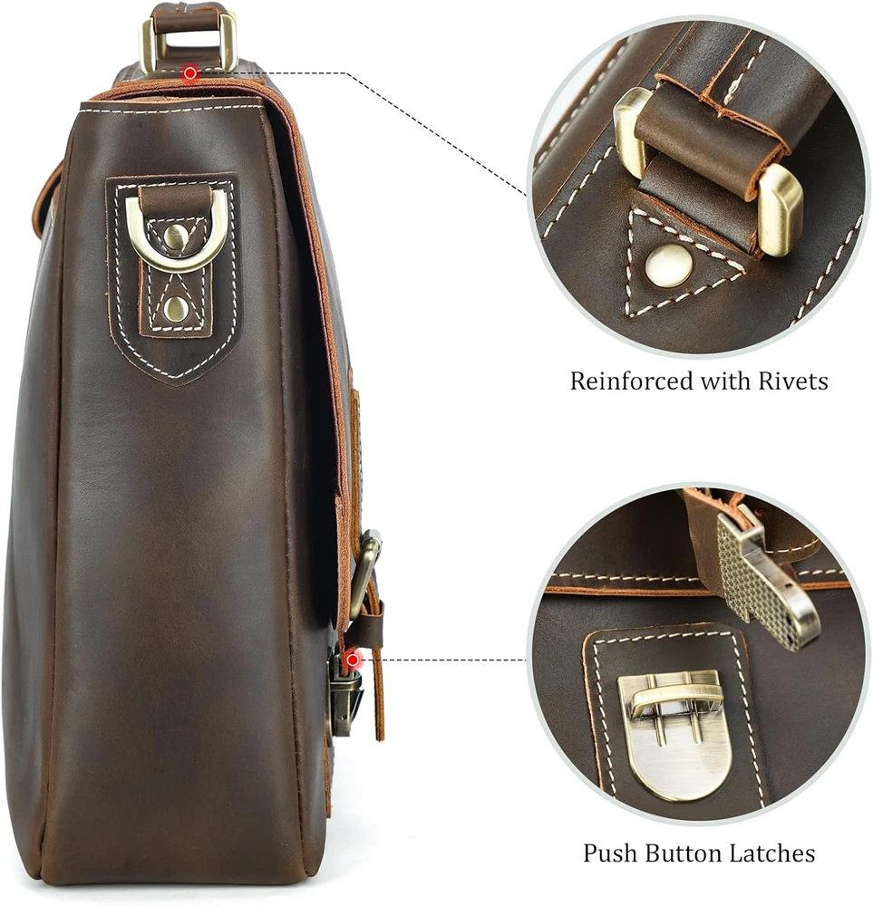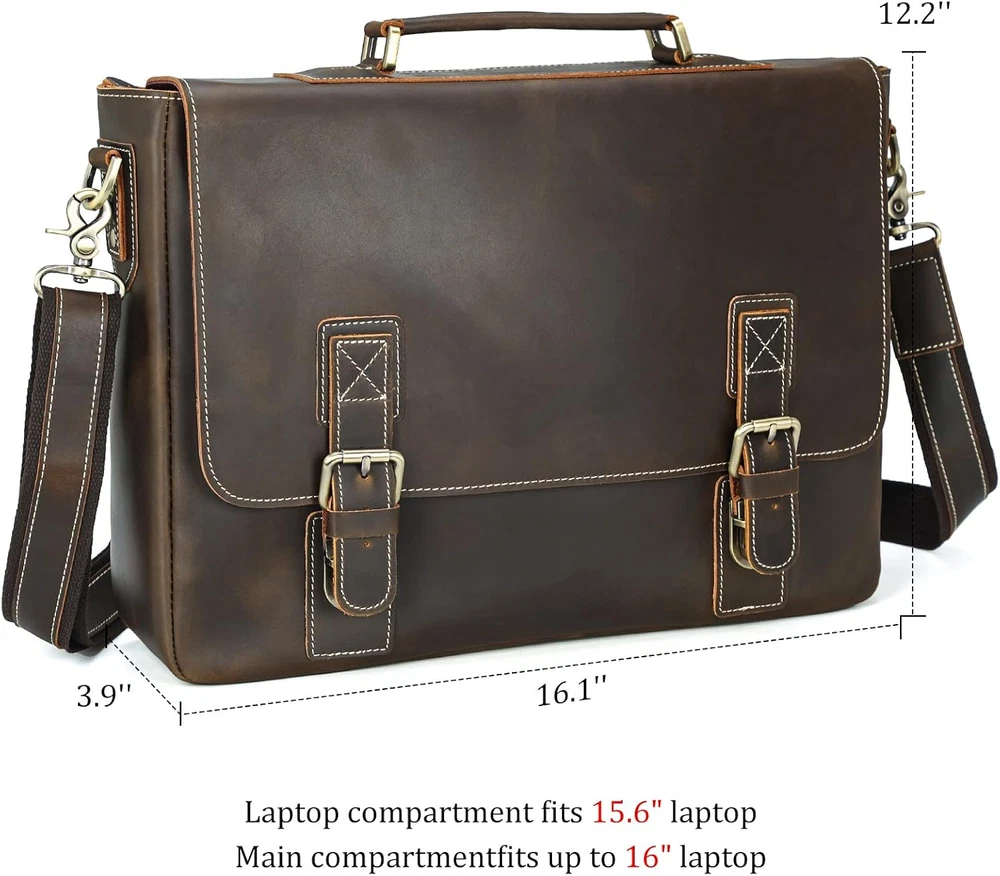 Store New Arrivals Add to Favorite View Feedback Contact Polare Vintage Full Grain Leather Tote Briefcase Professional 16'' Laptop Shoulder Messenger Bag with YKK Metal Zippers(Dark Brown) Description Item model number 6792978 Item Dimensions LxWxH 16.1 x 3.9 x 12.2 inches Color Dark Brown(updated Version) Color Dark Brown(updated Version) Country of Origin USA Item Weight 3 pounds Department mens Standing screen display size 15.6 Inches Is Discontinued By Manufacturer No Product Dimensions 16.1 x 3.9 x 12.2 inches In the Updated Version: We have improved the following three details based on the feedback of our customers. 1.The lining:while the old lining was made of polyester fiber, the upgraded lining is made of soft cotton cloth. 2.The zipper: We now use only YKK zippers to ensure quality and reliability. 3.The elastic band used to fasten the computer: The new elastic band is high density with excellent elasticity and thickness. High Quality Material: Made of natural full grain leather for a professional and trendy appearance. Inside of Bag Has Laptop Padding. The Laptop Padding fits 15.6 inch Laptop. The main compartment fit 16'' Laptop. Great Size for Casual and Work: Length 16.1"x Width 3.9" x Height 12.2" - Handle approx. 2 inches. Item weight: 3.5lb/1.6kg. Handcrafted: Strong stitching, handcrafted by professional artisans for long lasting durability that looks better with age. The side part leather stitching with D-ring are double stiched. Don’t Settle for Less: Comes with a one year Warranty and customer service Product Description Color: Dark Brown Polare Full Grain Leather Tote Briefcase 16'' Laptop Shoulder Messenger Bag ✔ HIGH QUALITY MATERIAL. Made of natural full grain leather. Inside of bag has laptop padding. The Laptop Padding fits 15.6" Laptop. The main compartment fit 16'' Laptop. ✔ DIMENSIONS. Length 16.1"x Width 3.9" x Height 12.2" - Handle approx. 2 inches. Item weight: 3.5lb/1.6kg. ✔ HANDCRAFTED. Strong stitching, handcrafted by professional artisans for long lasting durability that looks better with age. The side part leather stitching with D-ring are double stiched. Luxury Gift Package Perfect Gift For Him Luxury pack with a thick cotton dust bag to protect your bag in perfect condition. It is one of the most amazing gift choices for your family, friends and yourself, the meaning will last a . Details Sturdy Handle Premium Thick Hook Customized Hardware Soft Shoulder Strap Pad ABOUT US We offer the best prices around on high quality products. Our E-store includes media such as books, movies, music and games while offering electronics, toys, sporting apparel, clothing, tools, general home, garden items and more. SHIPPING We are always working hard to ensure your package arrives as soon as possible. Please understand that some factors like weather, high postal traffic, and the performance of shipping companies are outside of our control. We offer free shipping to the lower 48 states and ship within 2 business days of payment, usually sooner. We do not accept P.O. Boxes. Please provide a physical address. For shipping outside of the continental USA, we only use eBay's Global Shipping Program.The item is shipped to KY and then sent to the rest of the world. International customers are responsible for all duties and taxes. Continue to check out in order to calculate costs for shipping the item to your country. Messages regarding eBay's Global Shipping Program MUST be directed at eBay EXCLUSIVELY. RETURNS We offer a 30-Day Return Policy on items which you are not completely satisfied with. You have the option for a full-refund or an exchange of the item. No returns are available on items shipped outside of the USA. PAYMENT We accept PayPal. CONTACT US This page content is yet to come Please ad us to your favorite seller and visit again later Thank You CUSTOMER SATISFACTION We try our very best to make sure every customer is completely satisfied. If there's a problem, message us! We're happy to help. WE ACCEPT Copyright © 2021 AutoDS. | All Rights Reserved