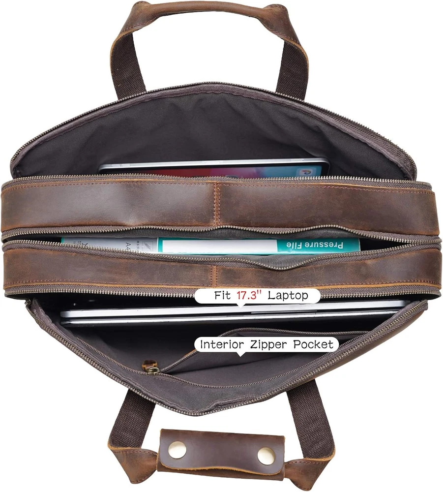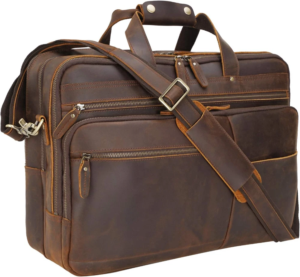 Polare X-Large 18" Full Grain Leather Briefcase for Men Business Travel Case Mes
