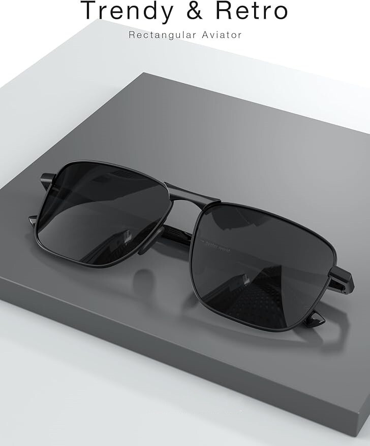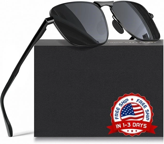Gafas De Sol Polarizadas Para Hombre Lentes Cuadrado Men Sport Sunglasses Negro MEJORA TUS NUEVAS GAFAS DE SOL: Hemos diseñado unas gafas de sol polarizadas estilo aviador rectangulares retro para proteger tus ojos y hacerte lucir GENIAL. Estilo cuadrado único; elegante y de buena calidad; ¡una buena opción para conducir, para la playa y para el día a día! Idea de regalo perfecta para amigos y familiares LENTE POLARIZADA UV400: Lente polarizada de calidad. Protección UV400 y filtrado eficaz de los reflejos; Bloquea el 100 % de los dañinos rayos UVA y UVB; Visión de alta definición y restaura el color real Cómodas bisagras de resorte: Nuestros marcos están hechos de material metálico de acero inoxidable ligero y bisagras de resorte flexibles, ligeras pero duraderas; Revestimiento antioxidante, antialérgico e inofensivo para la piel. Quita la presión de tus oídos y ayuda a evitar que los marcos se doblen Almohadillas nasales de silicona ajustables: Almohadillas nasales de silicona negra, no el típico plástico duro transparente. Son de un material agradable y suave, muy suave, cómodo y agradable para la piel. Accesorio perfecto para conjuntos elegantes PAQUETE DE REGALO: Incluye 1 gafas de sol; 1 funda blanda para gafas; 1 paño para gafas; Caja de embalaje*1. Varios colores de lentes con estilo aviador rectangular clásico. La elección perfecta para disfrutar de la conducción, las vacaciones y todas las actividades al aire libre. Diseño superligero que apenas puede sentir en su rostro, lo que le brinda una experiencia de uso sin estrés. Las lentes polarizadas y UV400 le brindan una visión clara y natural, lo que le brinda protección total al conducir o realizar actividades al aire libre. Tamaño del producto: Ancho de la lente 59 mm (2,32 pulgadas), Alto de la lente 47 mm (1,85 pulgadas), Puente nasal 14 mm (0,55 pulgadas), Patilla y patilla 145 mm (5,71 pulgadas), Largo del marco 145 mm (5,71 pulgadas)
