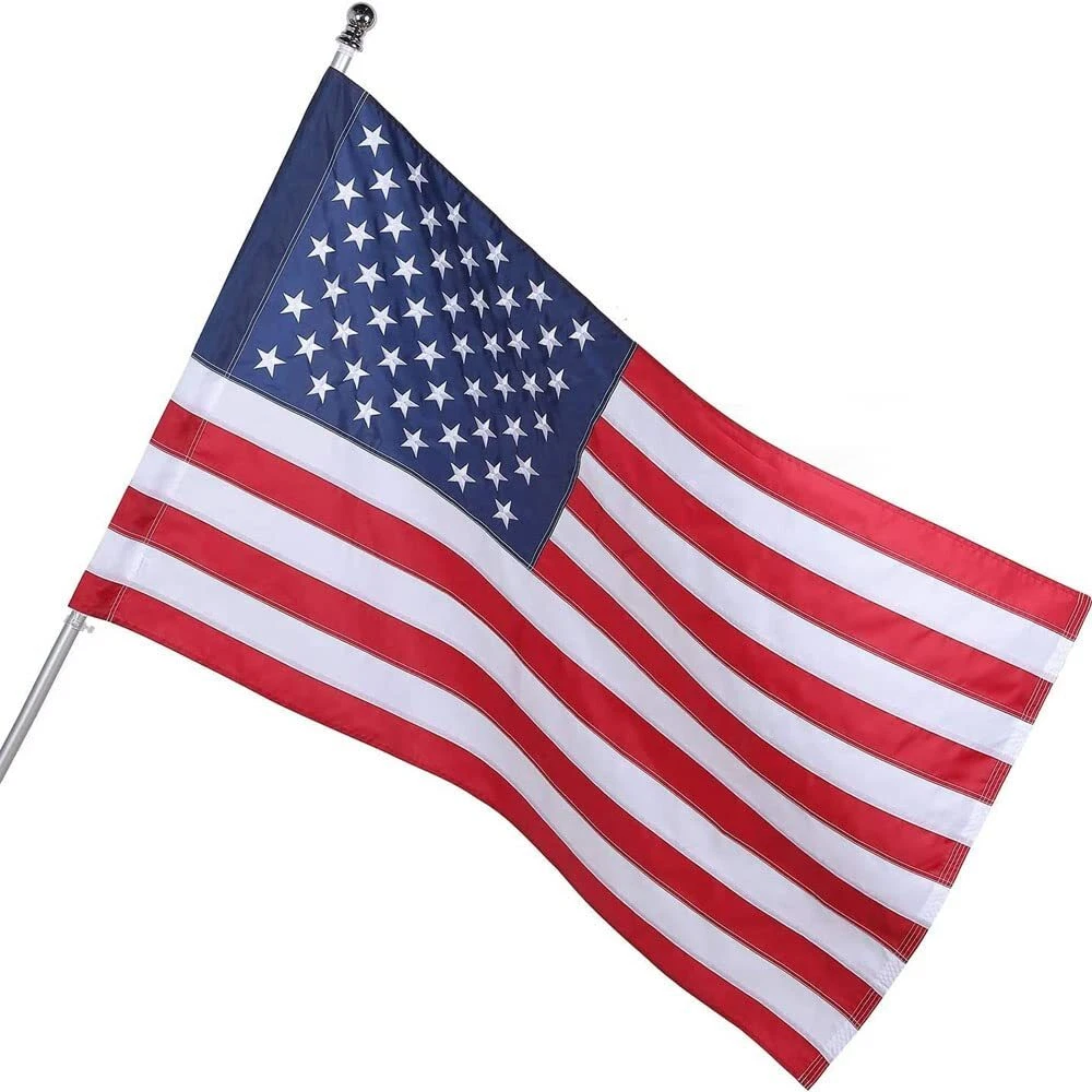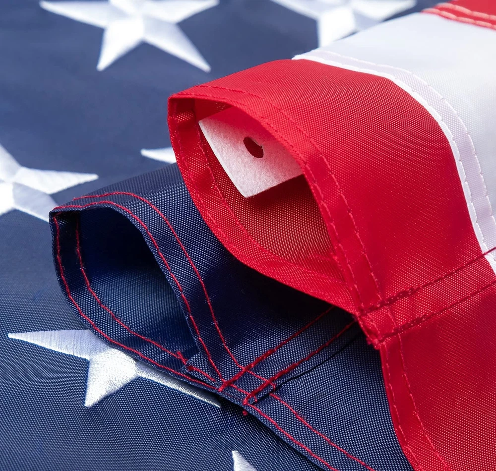 Pole Sleeve American Flag 3x5 FT Outdoor - American Flag Heavy Duty 3x5 FT 100% Made in USA All Weather Sewn Stripes Embroidered Stars (Pole Sleeve 3 by 5 Foot) 1.LONGEST LASTING FLAG- Our 3x5 Pole Sleeve USA flags are expertly made using heavyweight deluxe nylon, making sure that every flag can survive in bad weather. Your 3x5 Pole Sleeve American Flag outdoor will always remain in good condition, as it is supported by 2 tough brass grommets and has a quadruple stitched hem. 2.QUALITY Craftsmanship-Heavy duty canvas made header with truly brass made rust proof grommets can be strong enough to durable the flag. Four rows of stitching on header and fly hem avoid fraying and tearing 3.POLE SlEEVE AMERICAN FLAG-Light flyability with reinforced polyester header for tough extra strength, heavy-duty brass grommets and quadruple stitched fly hem 4.MADE IN USA FLAG- Sturdy Materia,3x5 Pole Sleeve american flag,100% polyester.Durable and high-strength wear resistance,works well in our unpredictable weather.It can be used as a gift for your friends,also you can use it as a decoration or hang the flag outside the house. 5.PERFECT SERVICE-We stand behind of our flag and try the best to control the details of each craft strictly and make sure the "No Questions Asked" is offered for you.